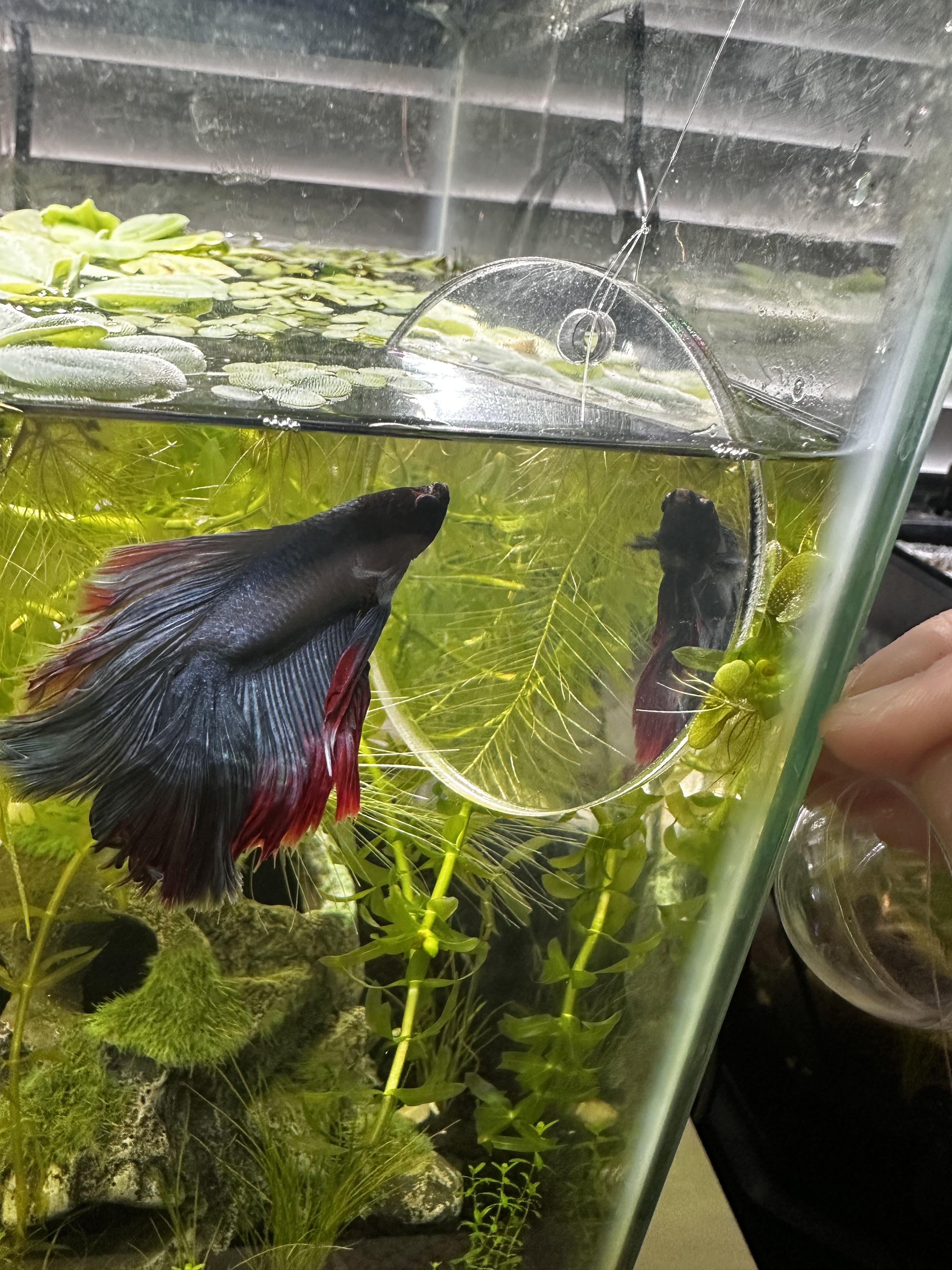 my betta acheron never flares at himself, but my female will flare. i’ve tried with him multiple times but he just checks himself out like “hey that dudes pretty handsome” and swims away. i know bettas all have different personalities but could it be that he’s really just that chill?? 😭🙏