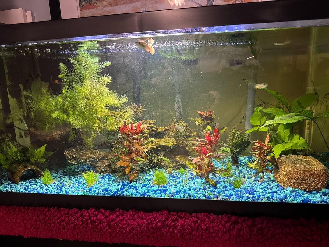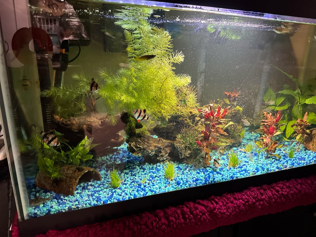 You’re going to absolutely hate my answer đ . Especially since it’ll remove some of your beneficial bacteria. With that said, I recommend ditching the colored decorative rock all together. You need a good substrate to grow hairgrass. Things will struggle growing in that. This isn’t my tank đ but I googled aquascapes with hairgrass and this one looked like a good one to share with you. Just to give you ideas.