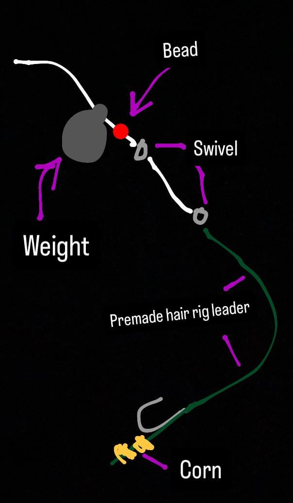I am new to carp fishing in NJ, and was wondering if something like what I have above would work okay for common carp, or any other fish lol. I would appreciate any advice to adjust my rig, as I do not know what type of weight to use. Any advice or tips is greatly appreciated, thanks!