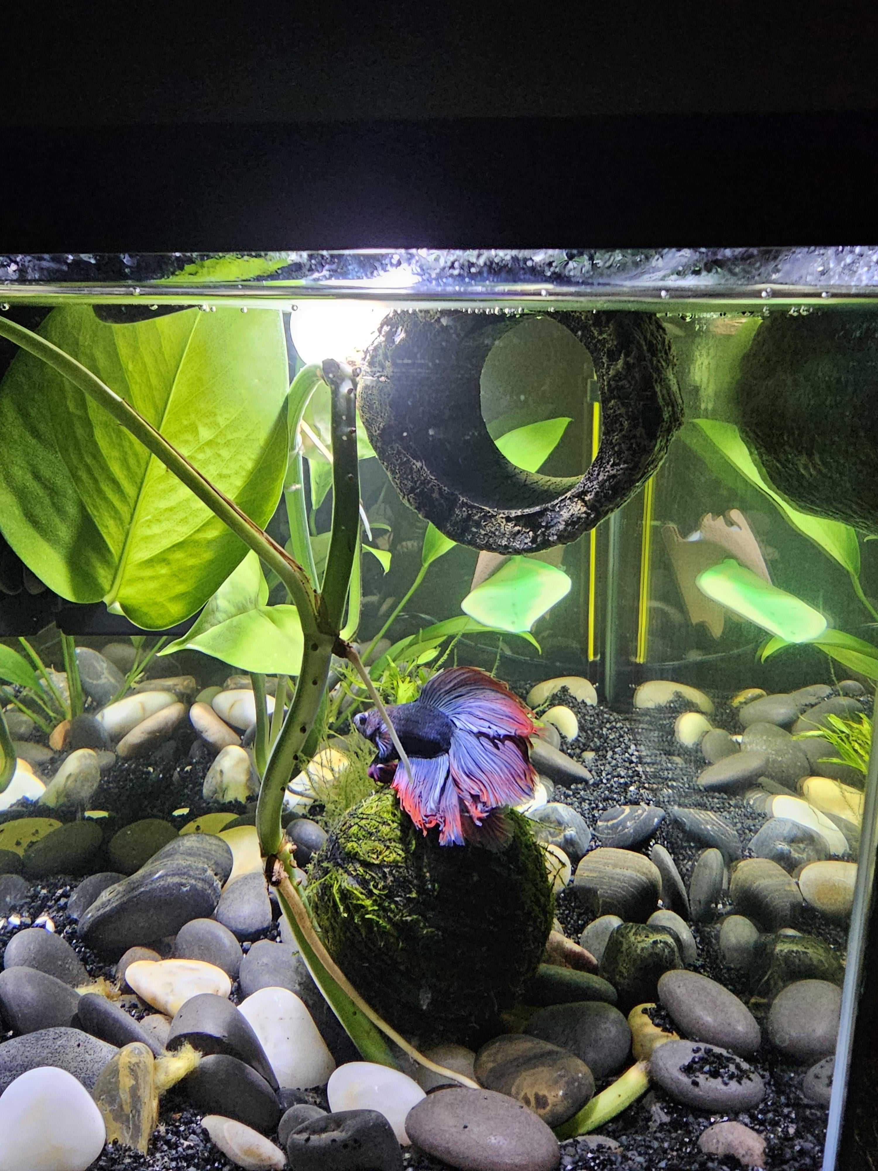 3 gallon with live substrate, Java fern, anubias, moss balls and ya boi Clark