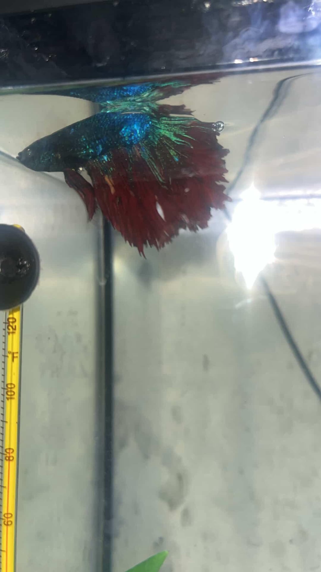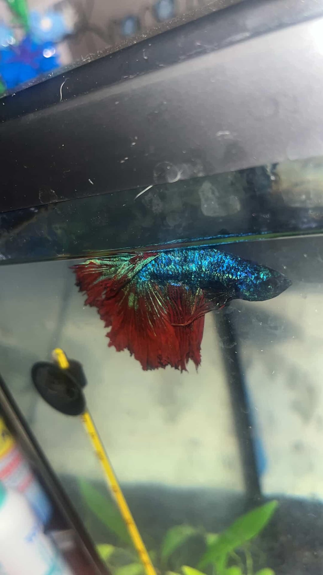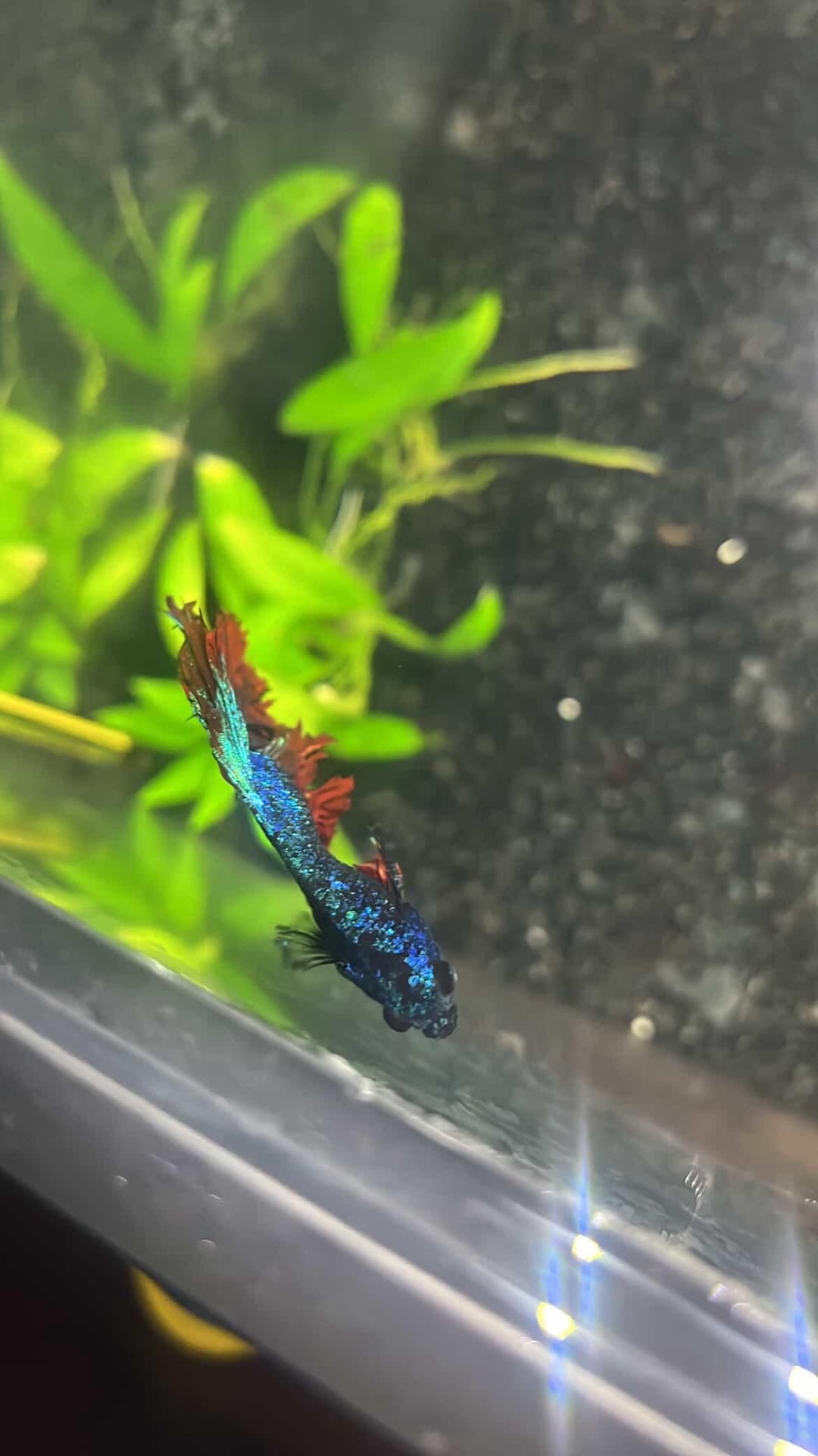 of his days in one spot in his tank (for reference he has a 10 gallon tank). He’s looking a little thin so I’ve upped his food from one pellet in the morning and one at night to two pellets in the morning and one at night.