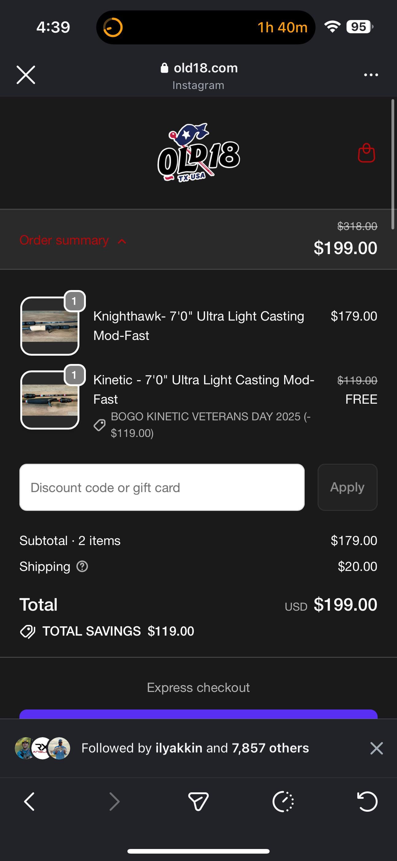BOGO Kinetic rod free at Old18. (A little bit cheaper than the Amazon deals I found for the 2 rods I want, 15% off and free shipping) Posted by aguilafde
