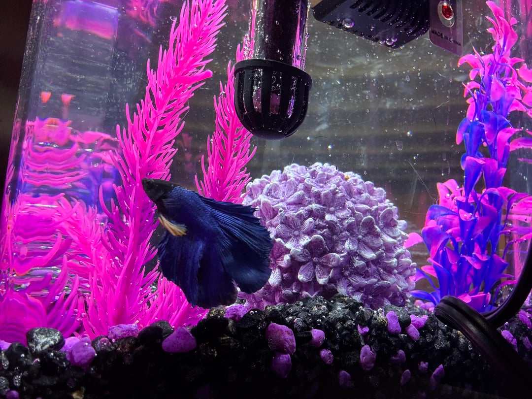 That is a very pretty betta! As far as I’ve seen, people here will probably recommend switching from fake to live plants, as fake ones could tear bettas fins.