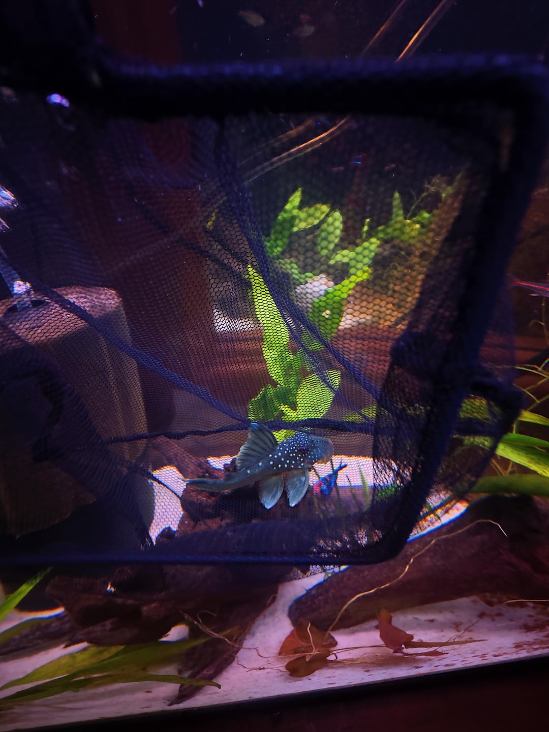 i’ve been wanting a blue phantom pleco for some time now, i’m so excited to have him in my tank! definitely was not expecting him to cost as much as he was ($90), especially with how small he is. BUT worth it, imo. who else has one 🥹 id love to see pics of yours!