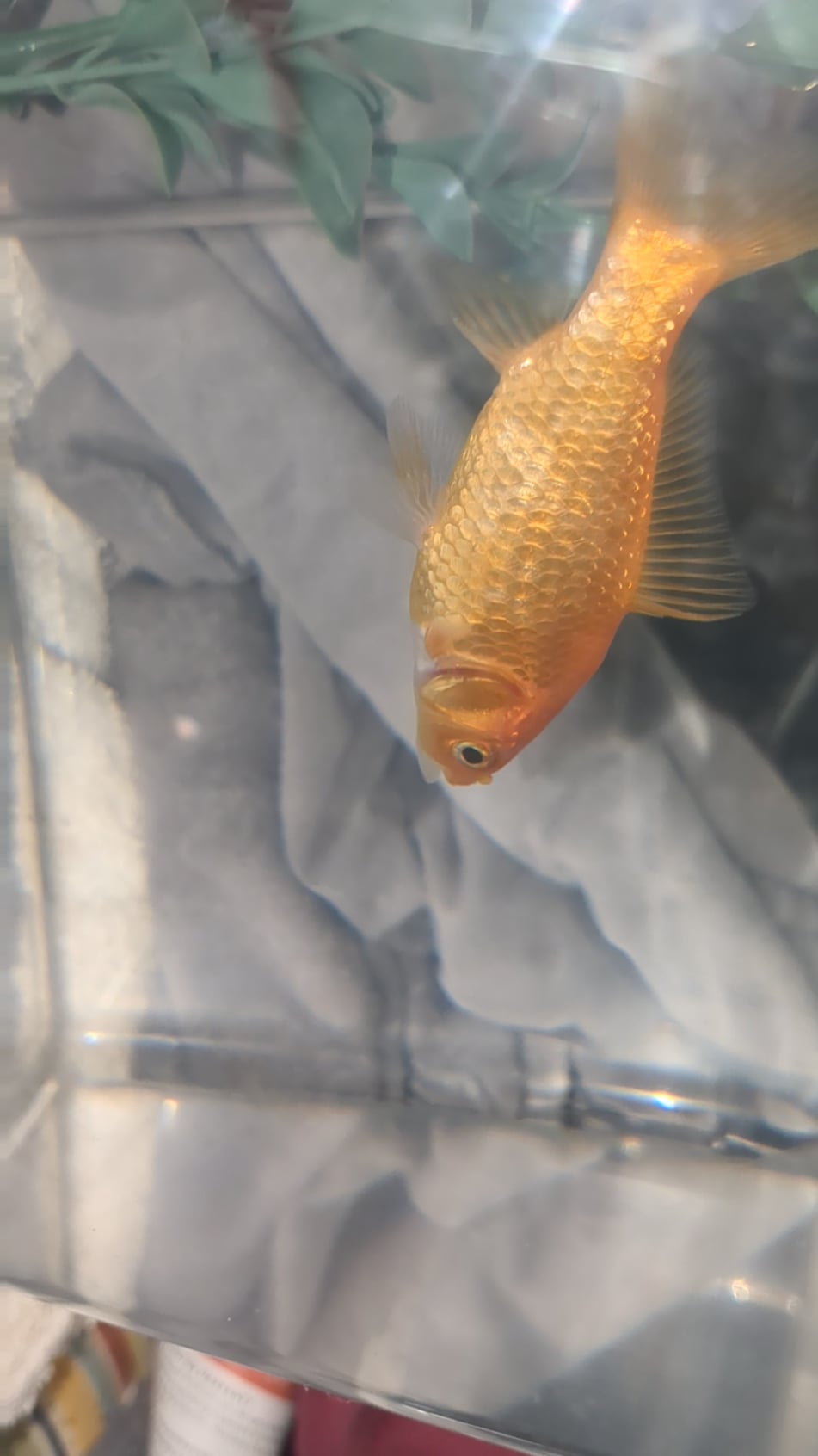 After about a day or so after I moved it into the quarantine tank, the fish started just kinda floating around in the tank, not a lot of swimming, just drifting around. A lot of drifting backwards slightly. Usually drifts in the middle/towards the top of the quarantine tank. If I turn a light on in the room or get close to the tank to look at it, it'll sink down towards the bottom of the tank. It still tries to go after food if offered but struggles and gives up when the food won't go in its mouth easily. It's not got its mouth up at the surface gasping for air, but it still looks like it's breathing heavier? It's gills are maybe too open/dark on the sides. I might be overthinking. It usually open/closed its mouth faster than the other fish, probably due to the deformity.
