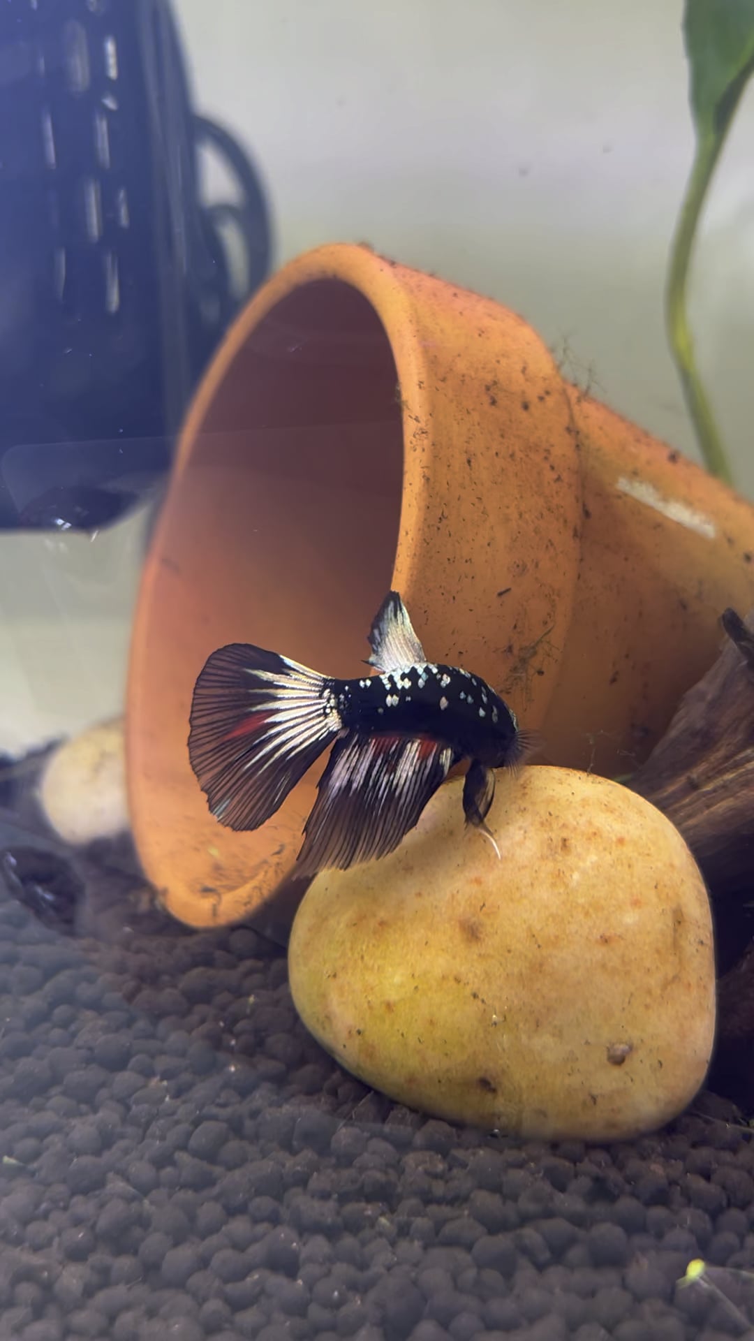 Thank you everyone for your suggestions! Please meet Obi (short for Obsidian) does anyone know what type of betta he is? I’ve never seen another like him before. And is there anything I need to know/ look out for as he only has 1 eye?