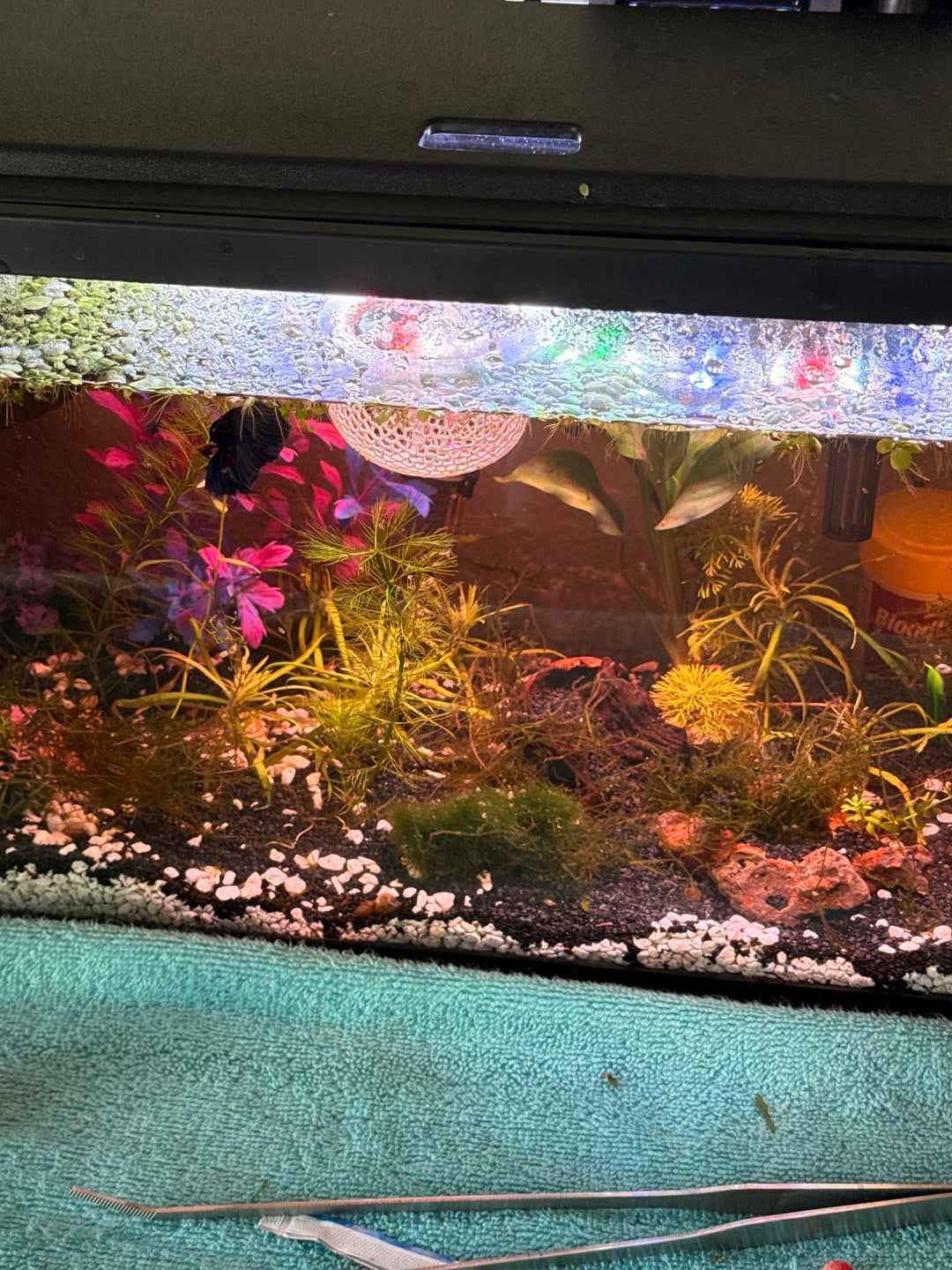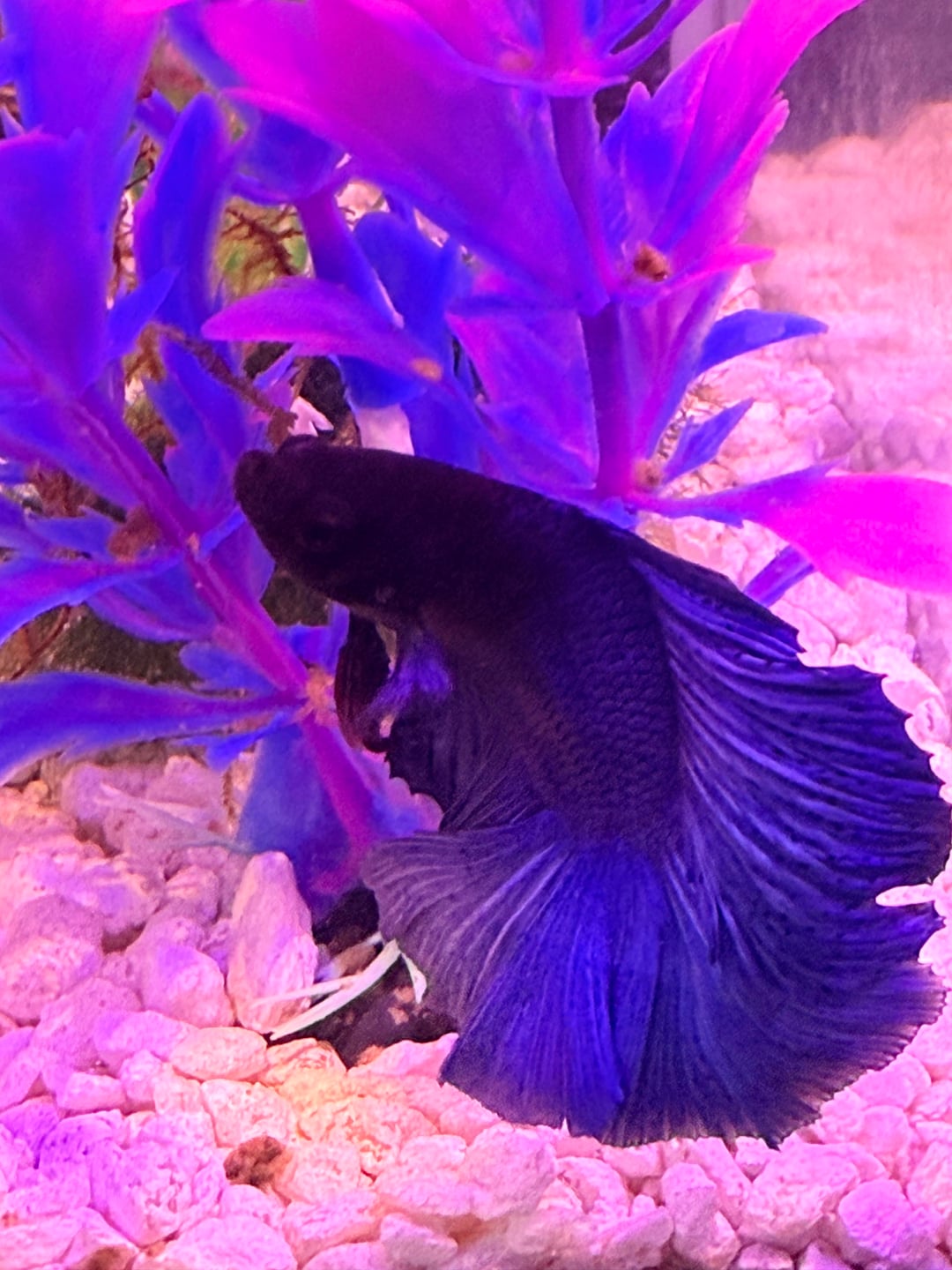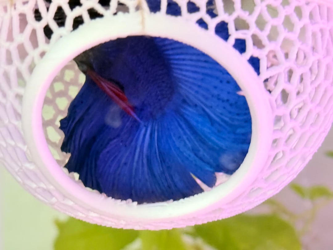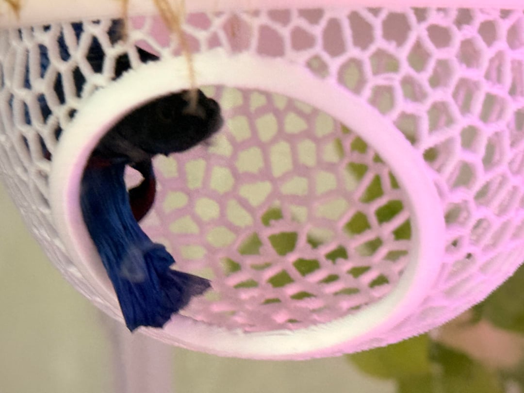 This is Carter, he’s a twintail half moon. Over the course of the month I’ve had him, I’ve been trying my best to keep his parameters and tank in check. He’s got some snail friends, bladder snails and an assassin snail. He loves his hammock and I may have “trained” him to go in there for feeding time unintentionally.