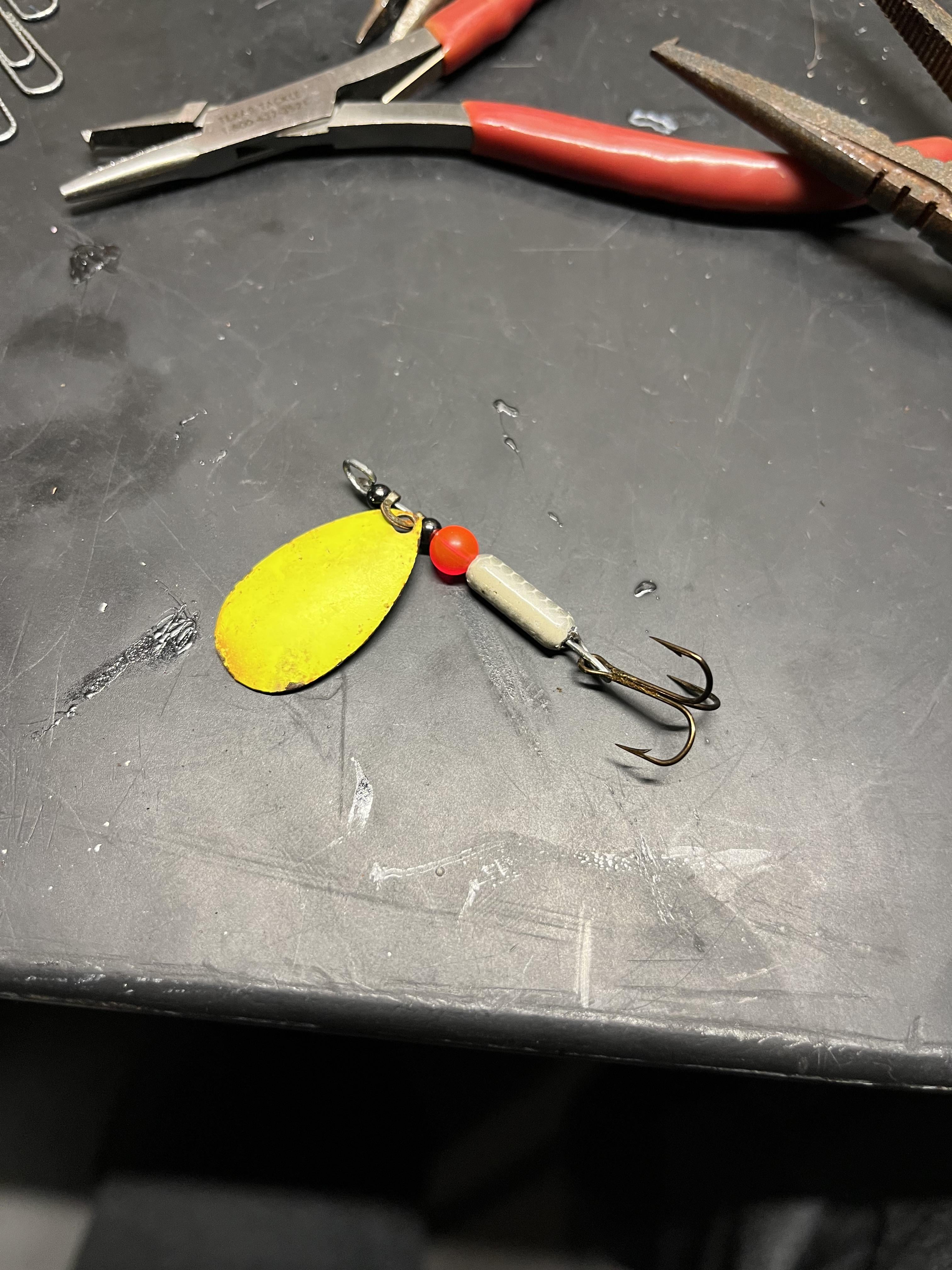I made an inline spinner out of a paper clip and some old bits I found laying around Posted by No_Offer_2786