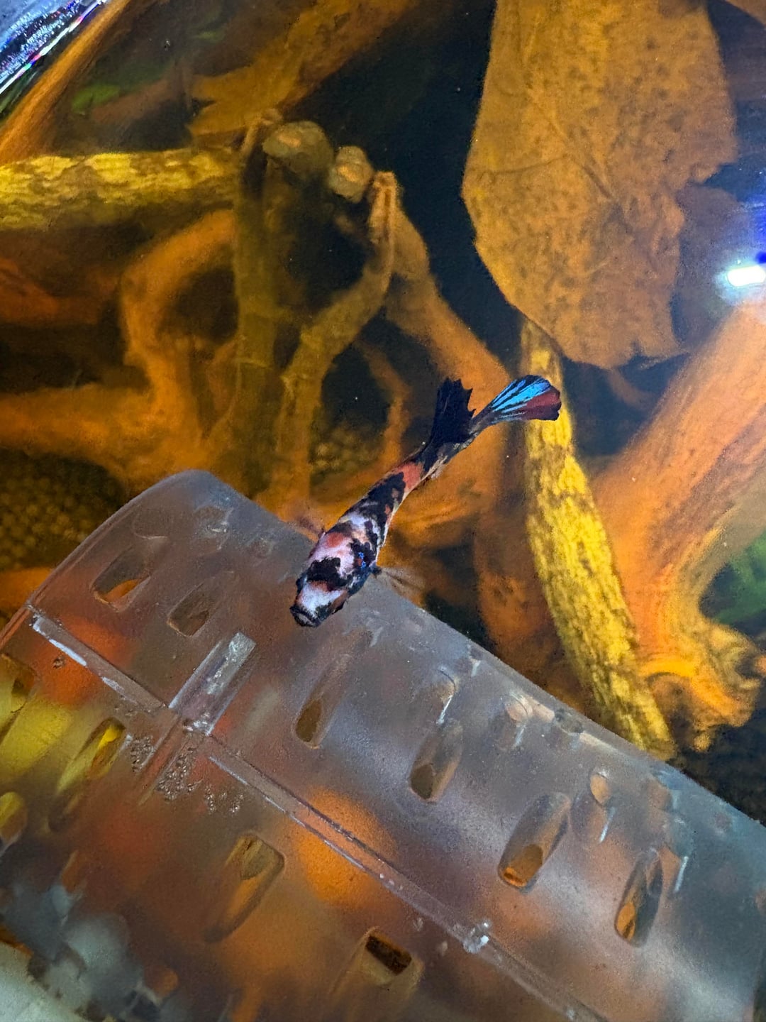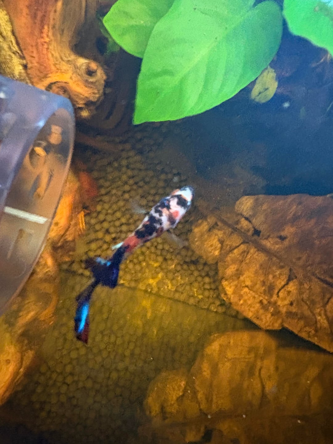 • ⁠Decorations and plants in the tank: drift wood and real plants
