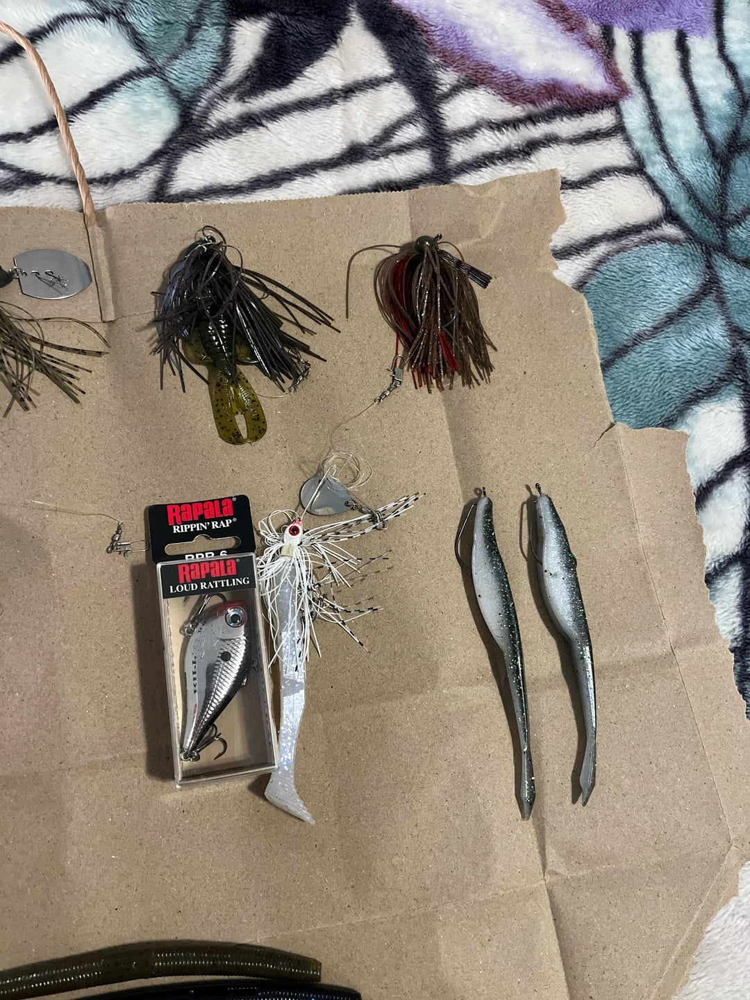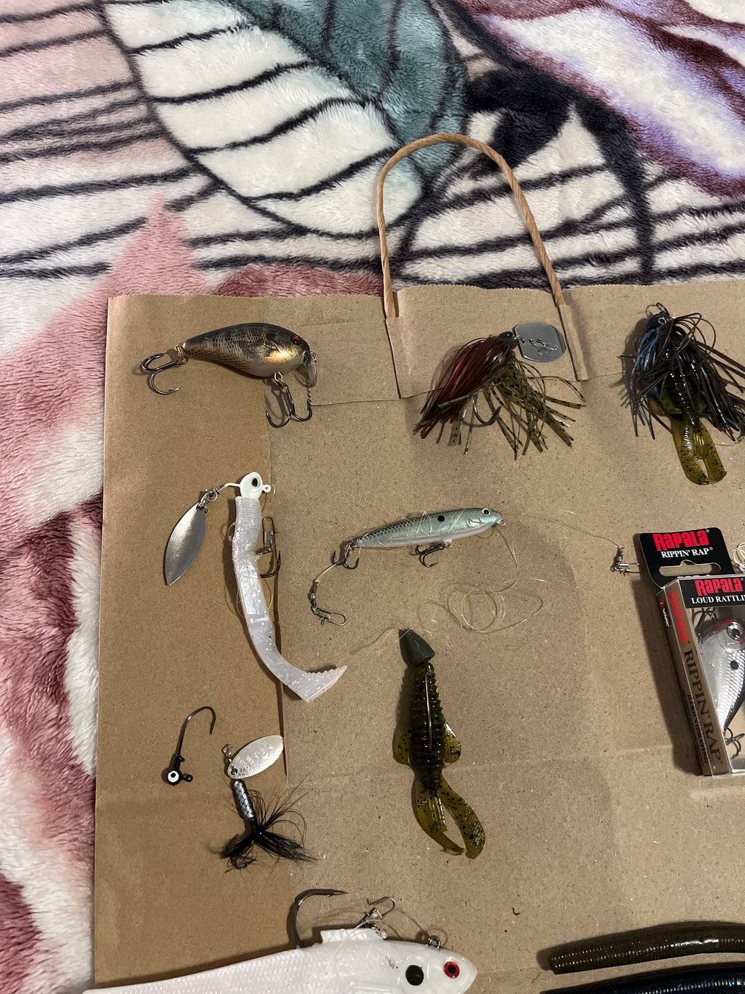 I know most of these lures are meant for or work better on a bait caster but this is what I got for now for my set up. Any help and tips are welcome because I’m tired of being skunked every time I fish :,)