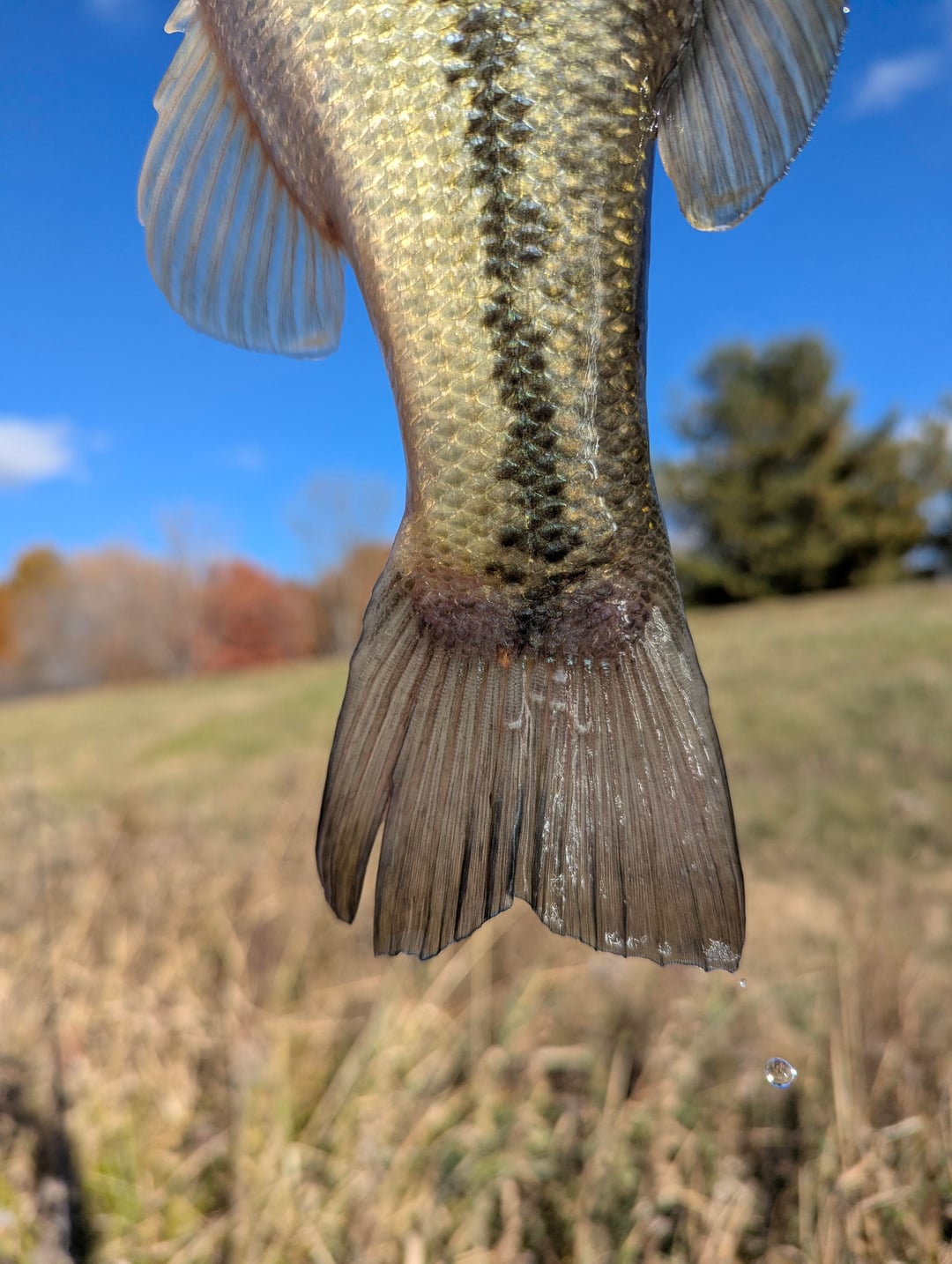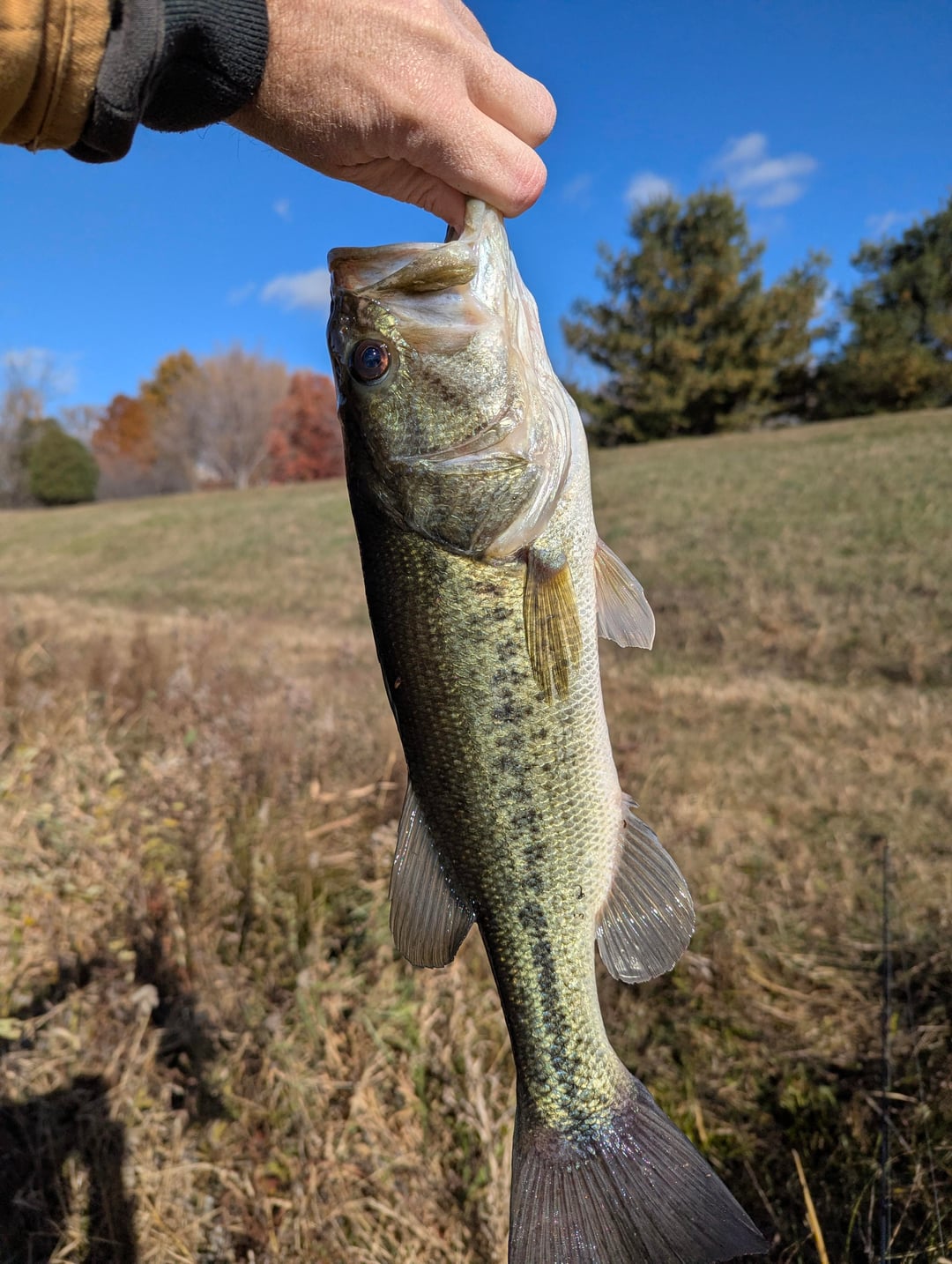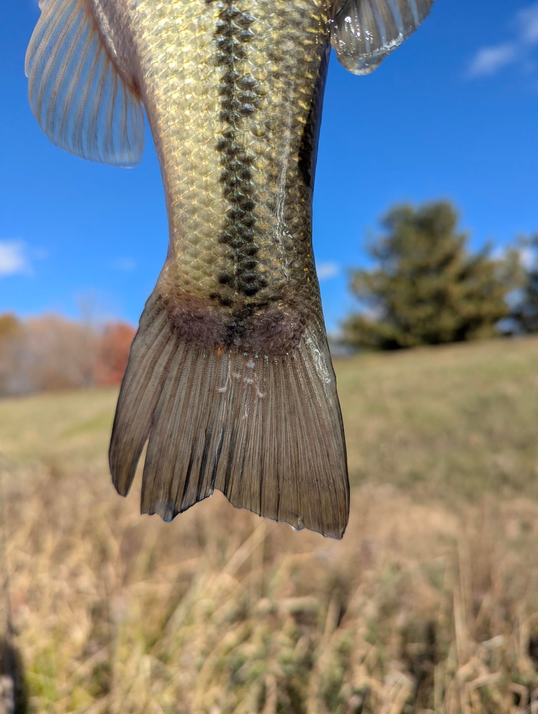 I am finding a decent number of bass I catch out of a small pond have these white bumps on their fins. Besides that, they seem healthy and strong. Any ideas on what it is?