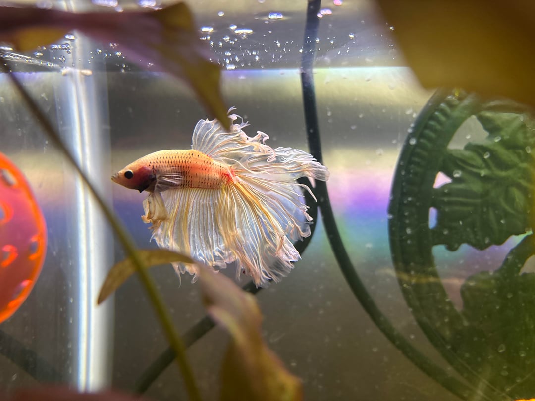 Food: Flakes twice a day, bloodworms once a week (he won’t eat pellets)