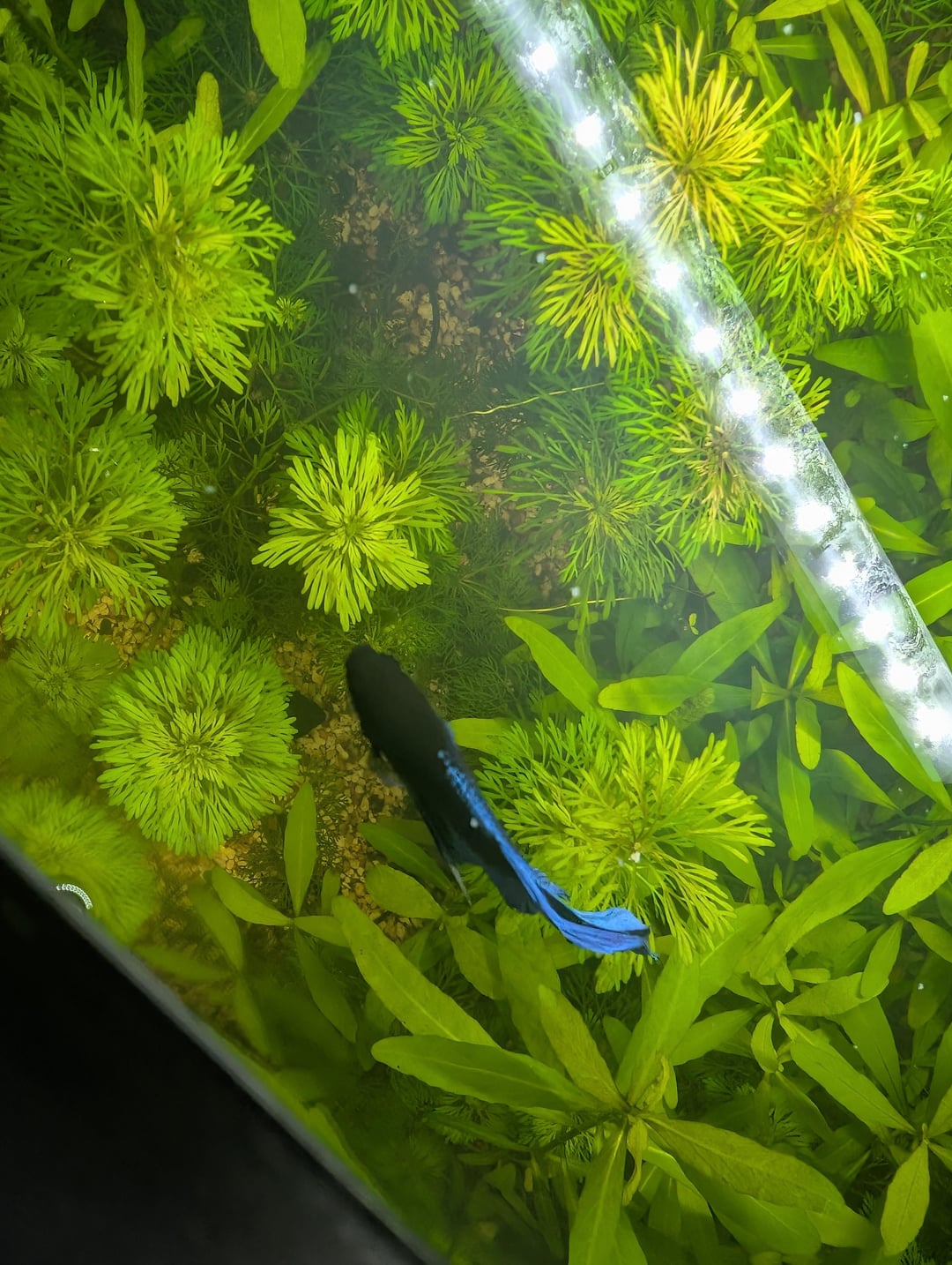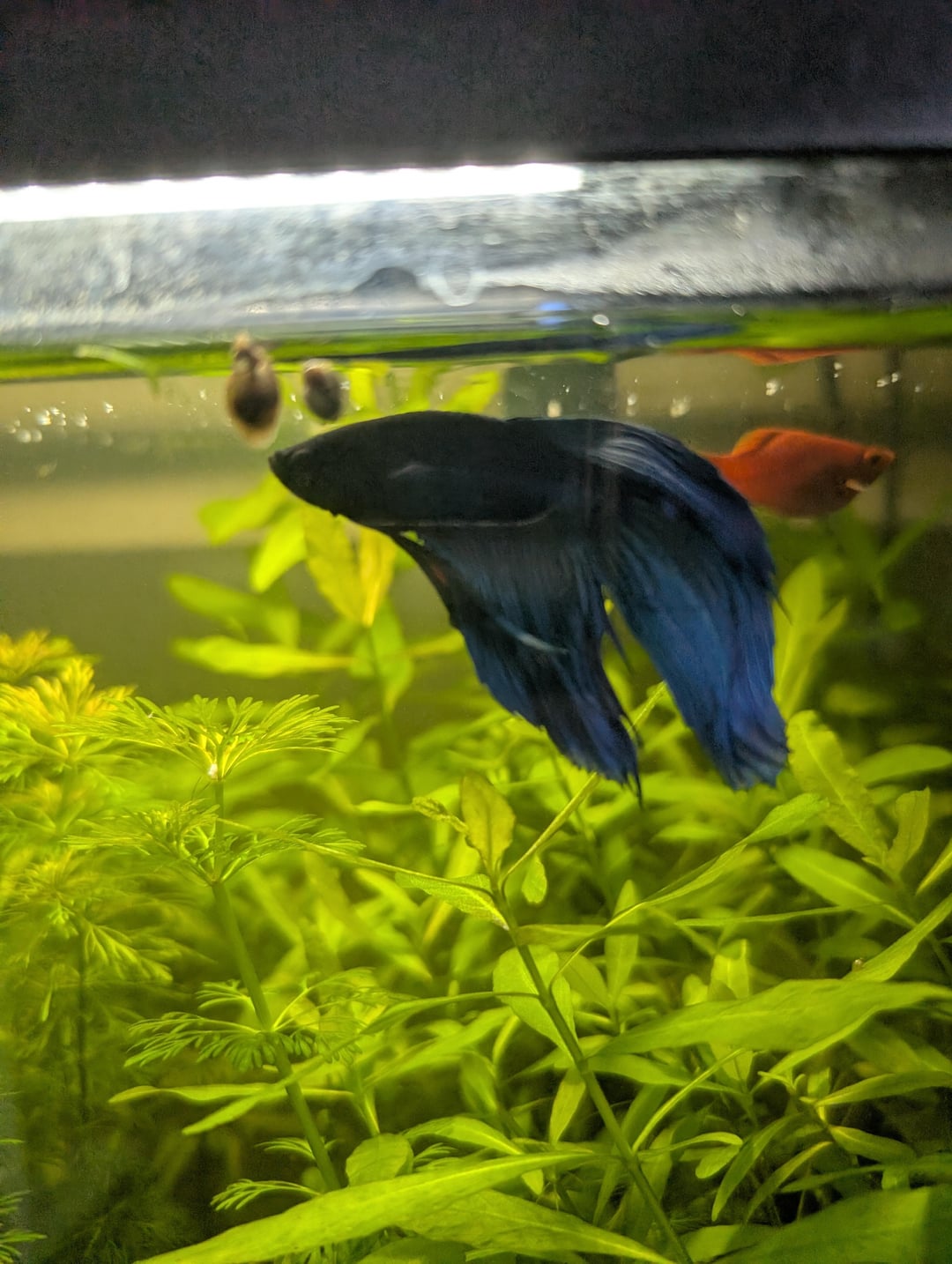 First time aquarium holder and betta owner. Is he happy? All the pictures in this subreddit make them look nicer then mine. (The fins)