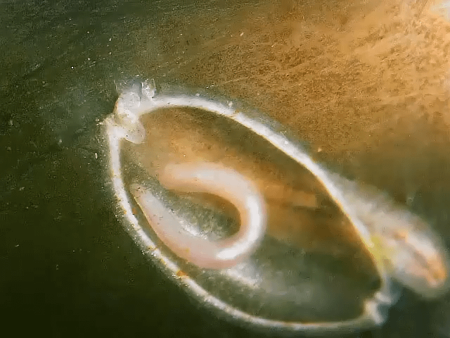 This for those who deal with planarians and want to know more about these flatworms and how they actually eat. The leech baby is a Barbronia weberi in a cocoon.