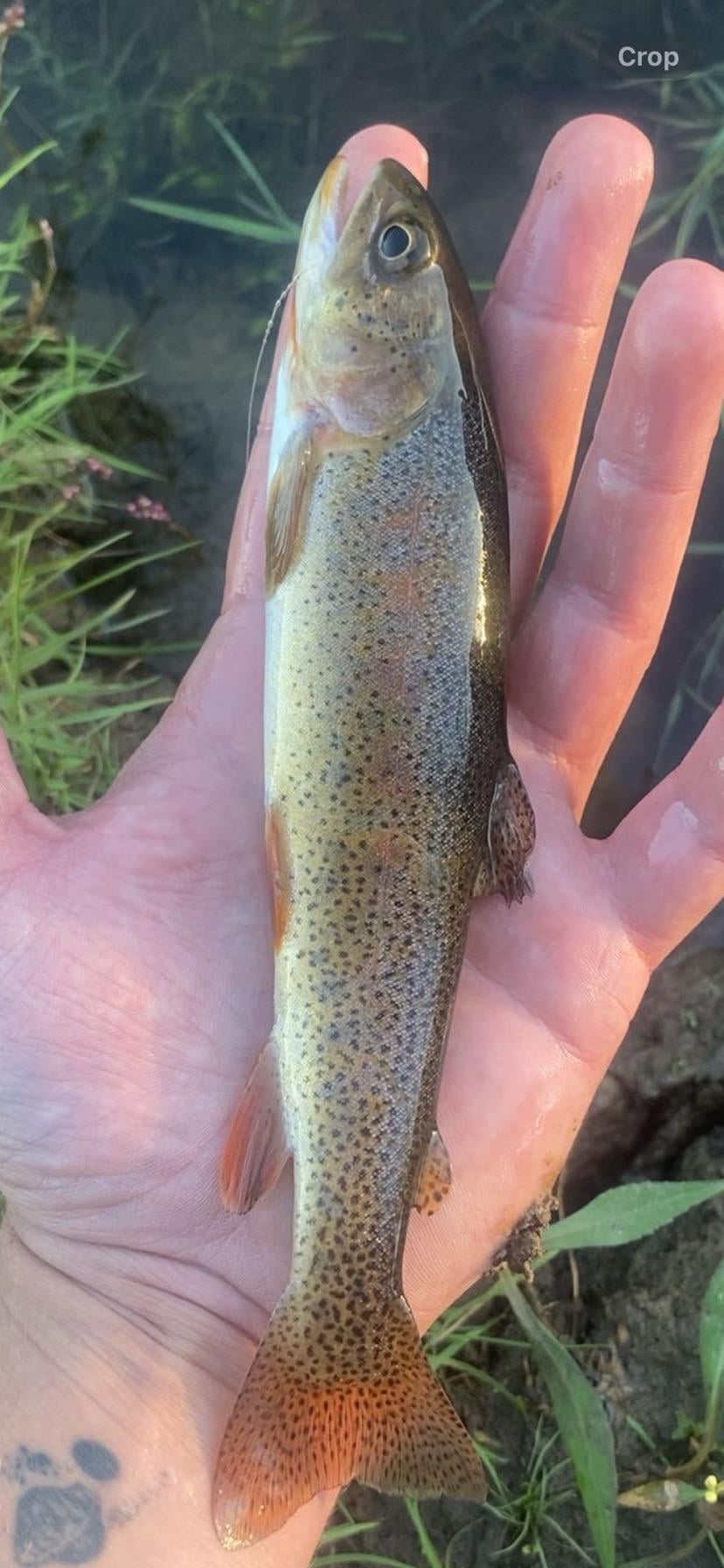 This was my first non-rainbow trout. It’s just a baby, but I think it’s a cutthroat. Not positive though, north Arkansas.