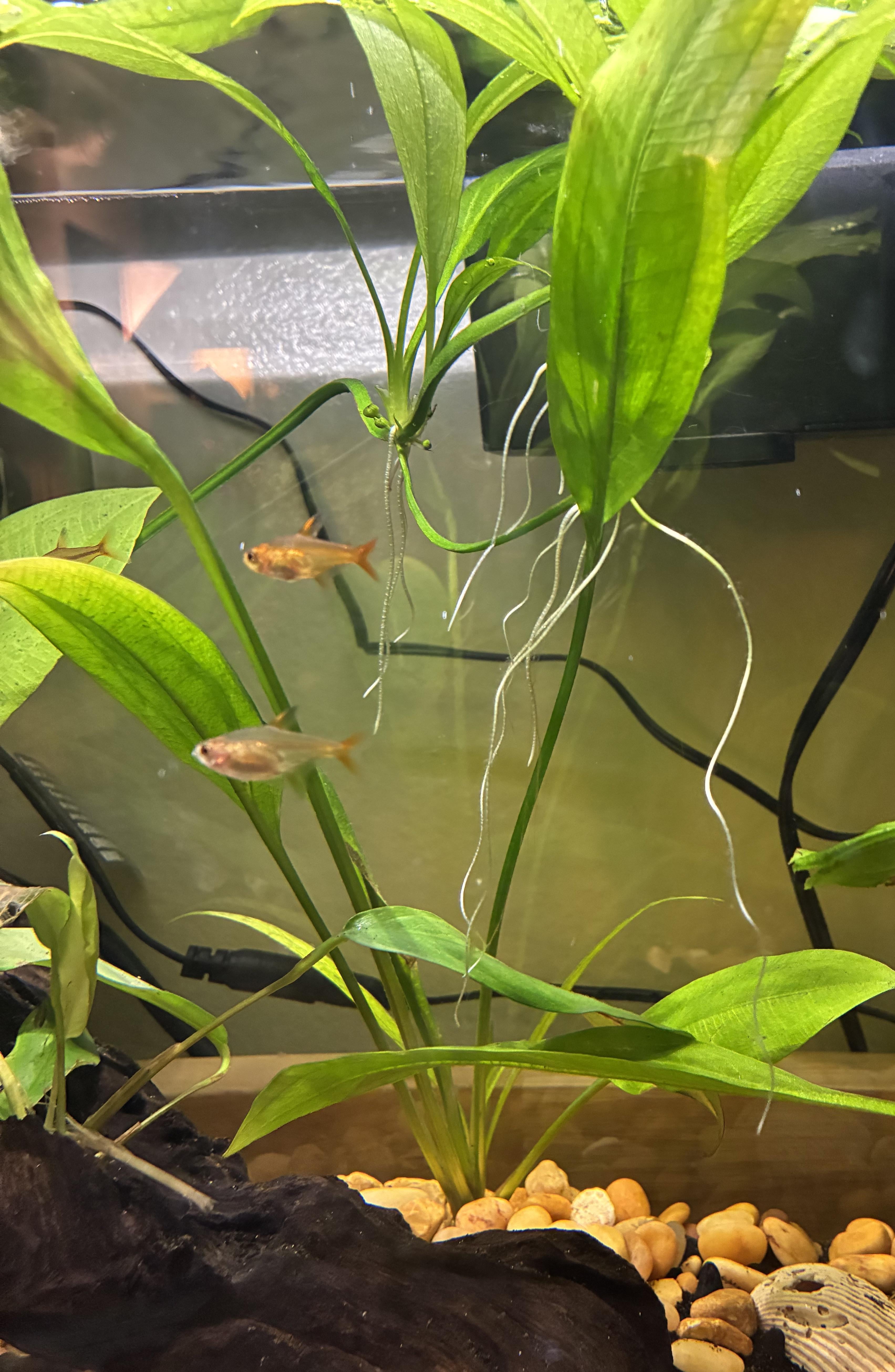 yes those are roots because that stem is producing new sword plants. If you cut those plants off the stem you can plant two additional sword plants in your tank.