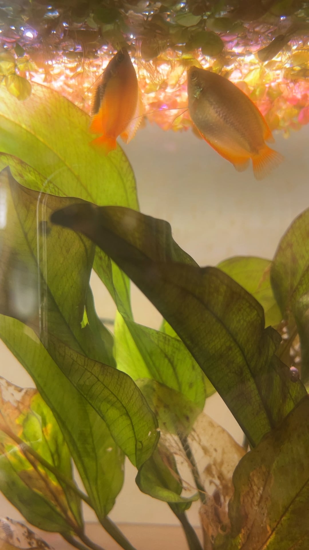 Can anyone tell me if they’ve seen this kind of behaviour from a honey gourami before?? He keeps following my other gourami (whom I think may be female) and then putting himself into a vertical position. I looked it up and it says swim bladder issues but he’s swimming normally when it’s not in front of the other gourami and then as soon as the other gourami is near by he starts swimming vertically?? Is this a mating dance of some kind??