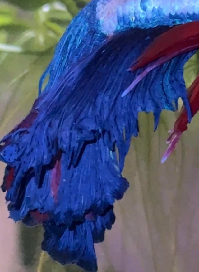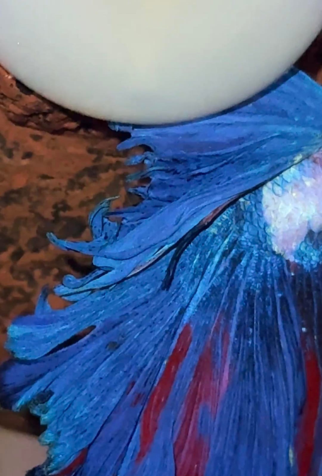 Zen’s fins have struggled for about 3 months now. I’ve treated twice with Kanaplex-saturated food, showing some improvement. However, the photos today show damage on his caudal fin that appeared within 12 hours. It was making noticeable progress and then suddenly turned ragged again?! I’m starting to wonder if he’s simply been nipping this entire time. There was one instance of a pinhole in the dorsal fin which did turn into a tear. It has not progressed.