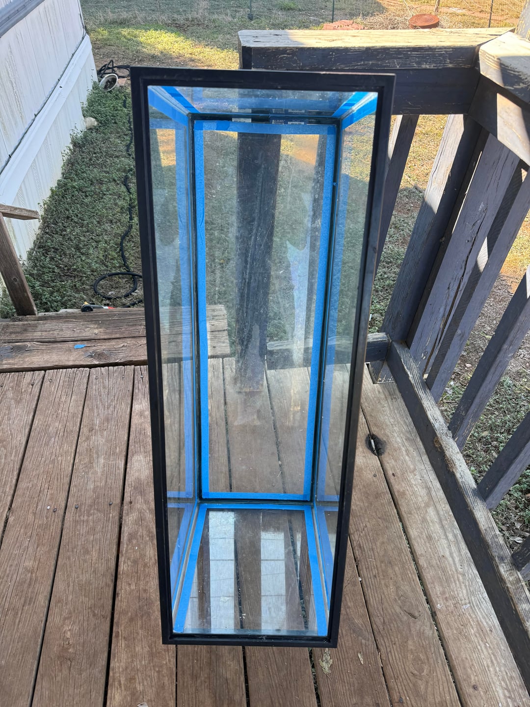 I posted this free 30 gallon tank the other day I got that’s 32 years old. Did my first re-seal today and it came out nice. I am so horrible at arts and crafts the taping part was the most difficult part. Also, I had to run around finding the right “aquarium safe” sealant. I’ll know in 48 hours if I did a good job. I do love the dimensions of this tank! Still need to find use for her.