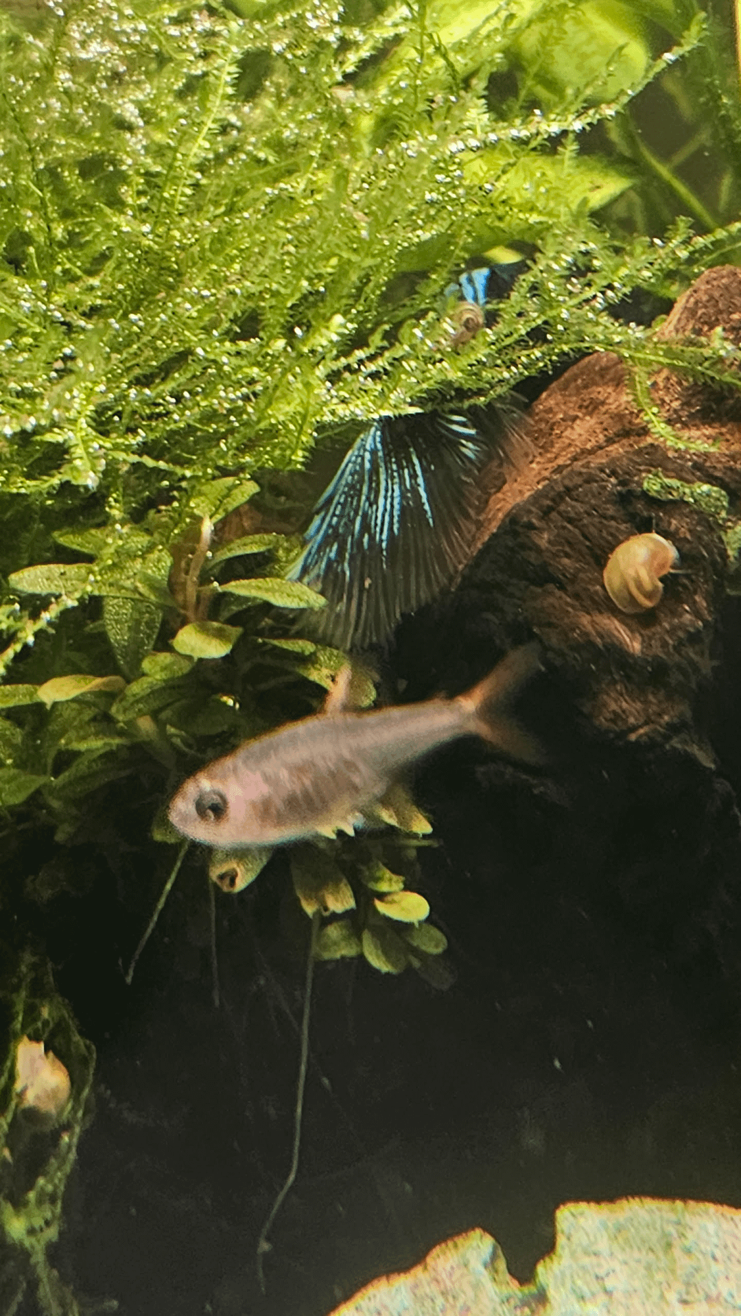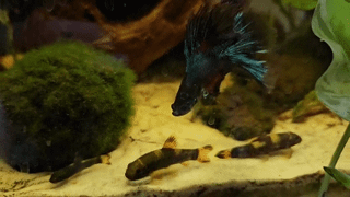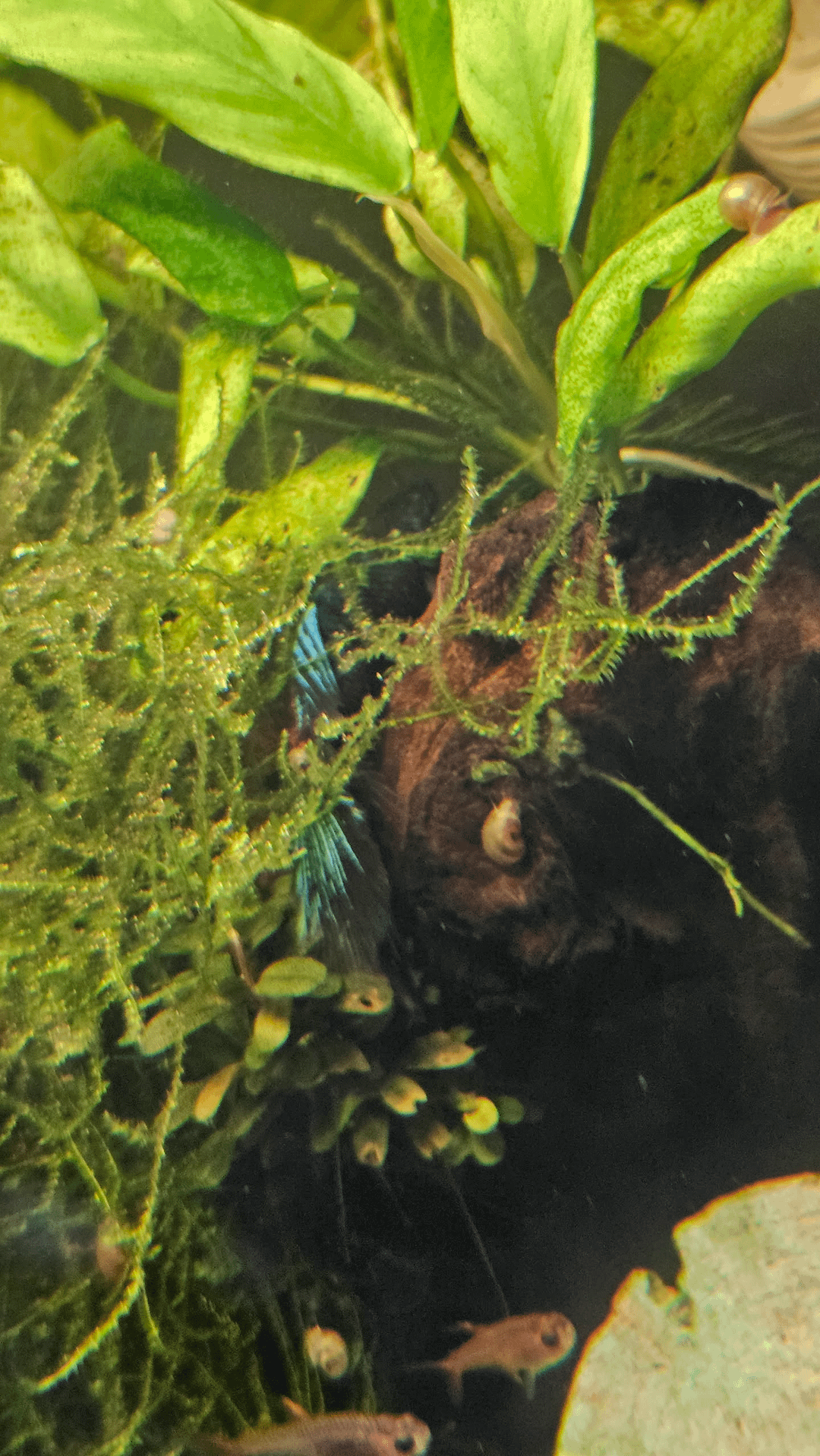He also loves wedging himself between the driftwood and the java moss for naps.