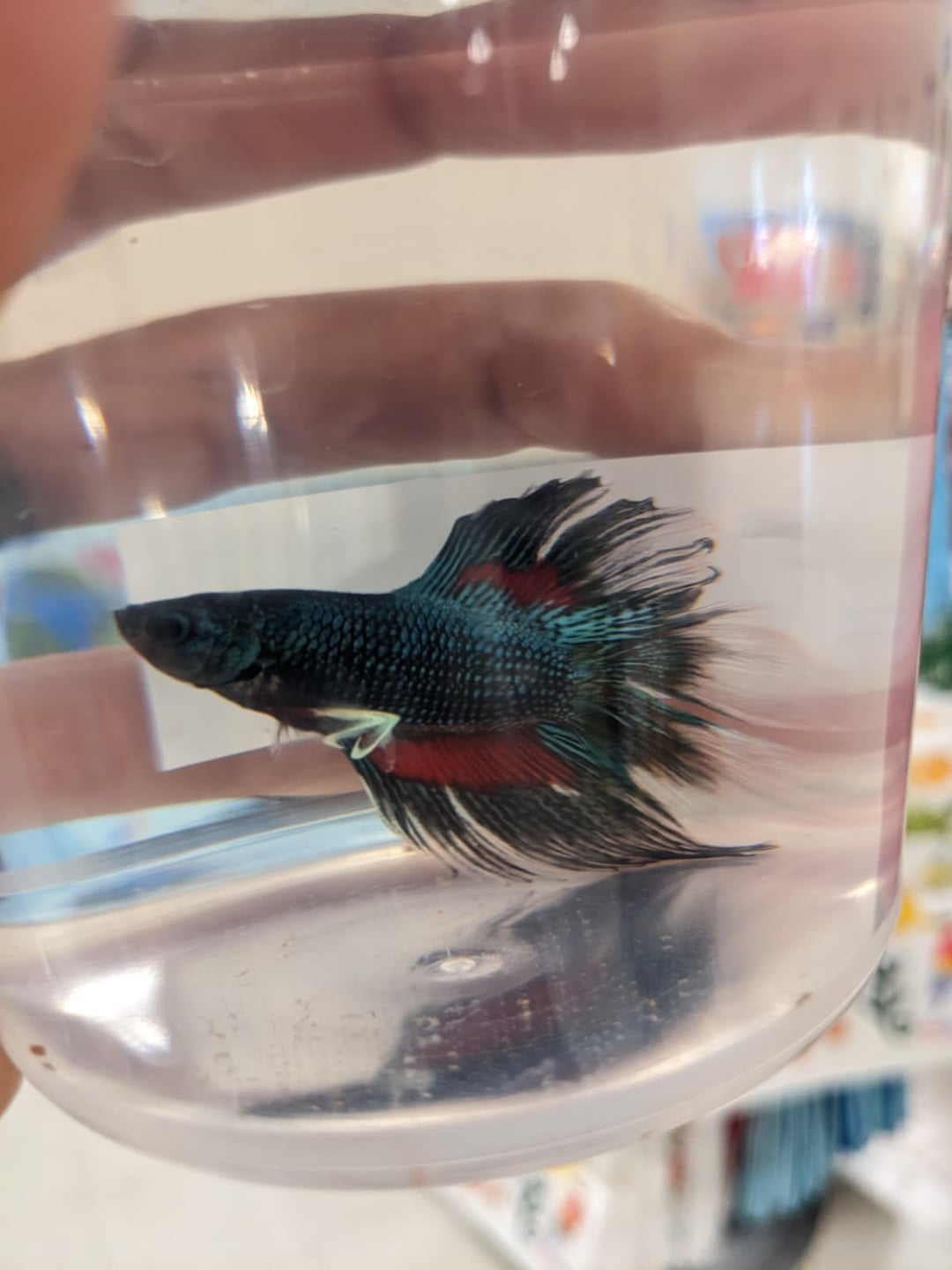 He was lying at the bottom of his neglected little cup, but when I walked by he got up and looked straight at me like he was asking for help. My 20-gallon community tank was missing a centerpiece fish, so I brought him home hoping he’d fit in. Turns out he was perfect. He even schools with the Ember Tetras, which honestly blew my mind.