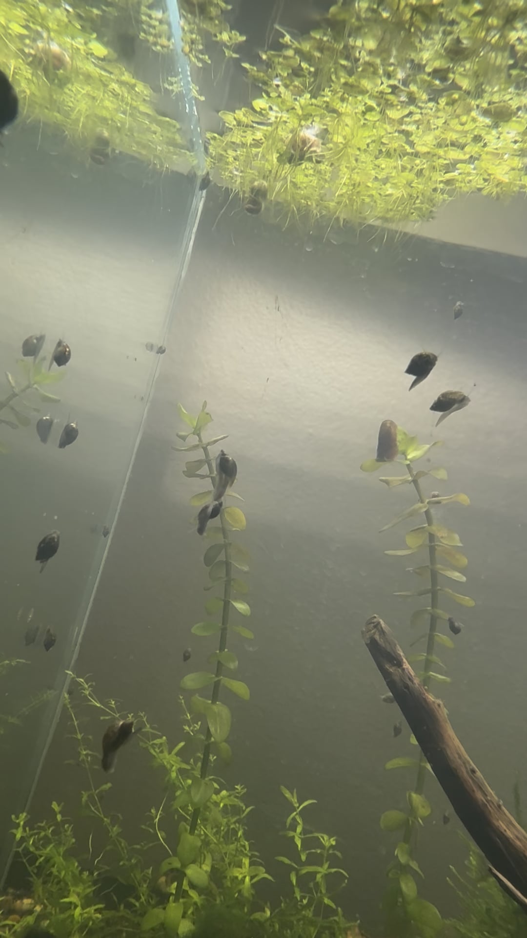 I’ve had bladder snails in my tanks for awhile but I’ve never seen a group of them float around like this.. at one point the two who are close to each other jerked upward like they were on a spider web? What are they doing?