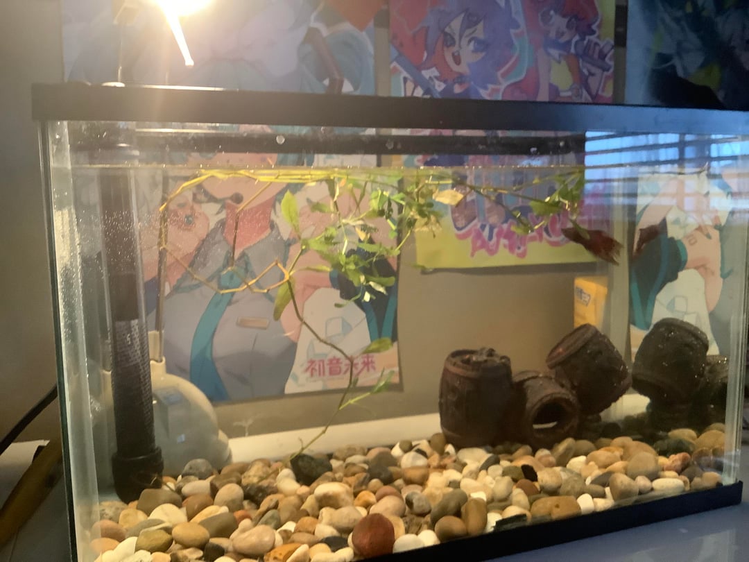 wassap guys, I’m new to keeping fish and stuff (I did before but I keep them in a super small bowl 😭). I finally set up a tank for this guy with a heater set to I think 28 degrees C. He’s just chillin near the top n stuff. anything I should know and/or improve on?