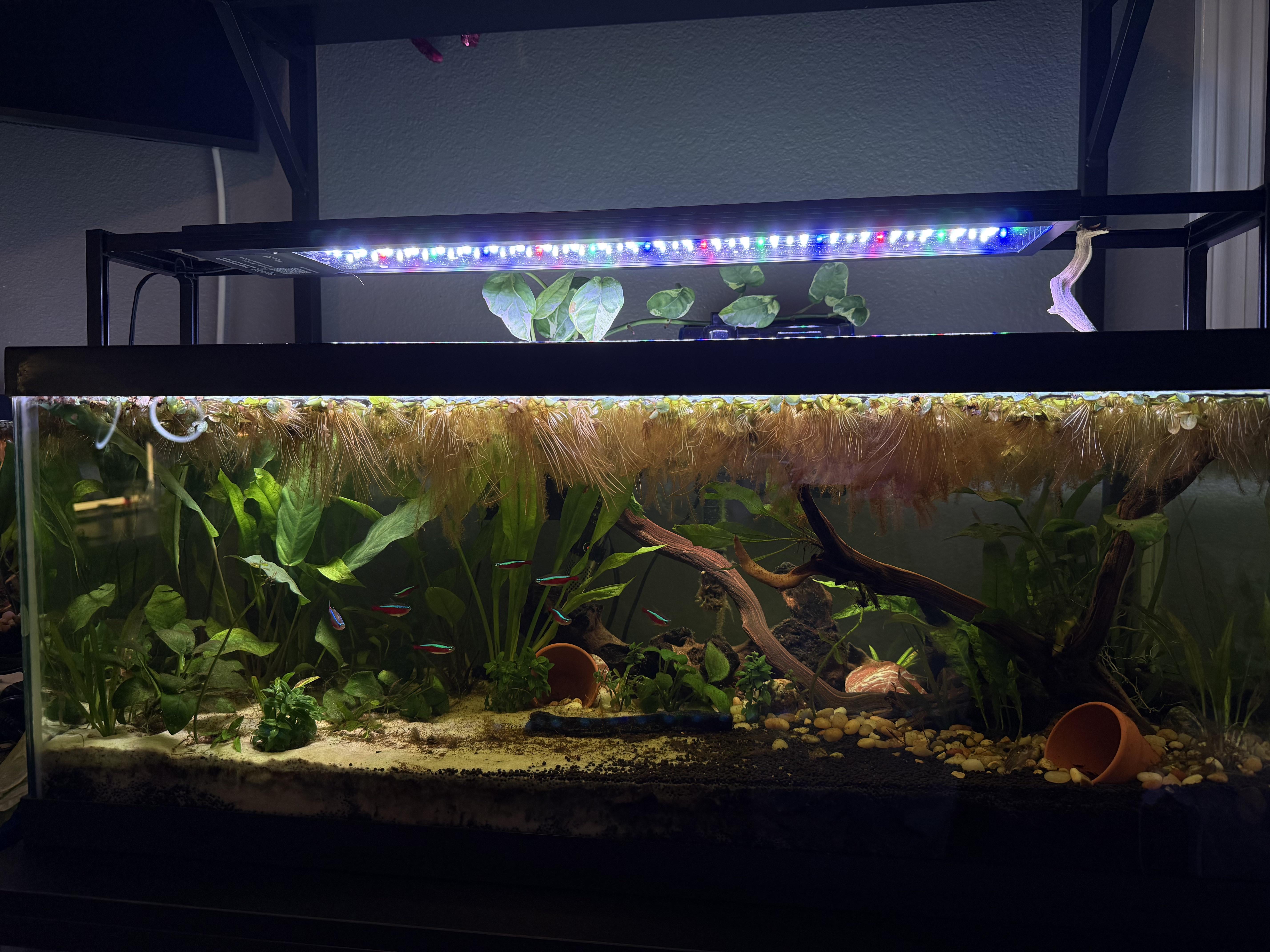 20 gallon long. Probably needs some more work but I want people to give me any advice on to make it better please! Posted by Mother_Tomato6074