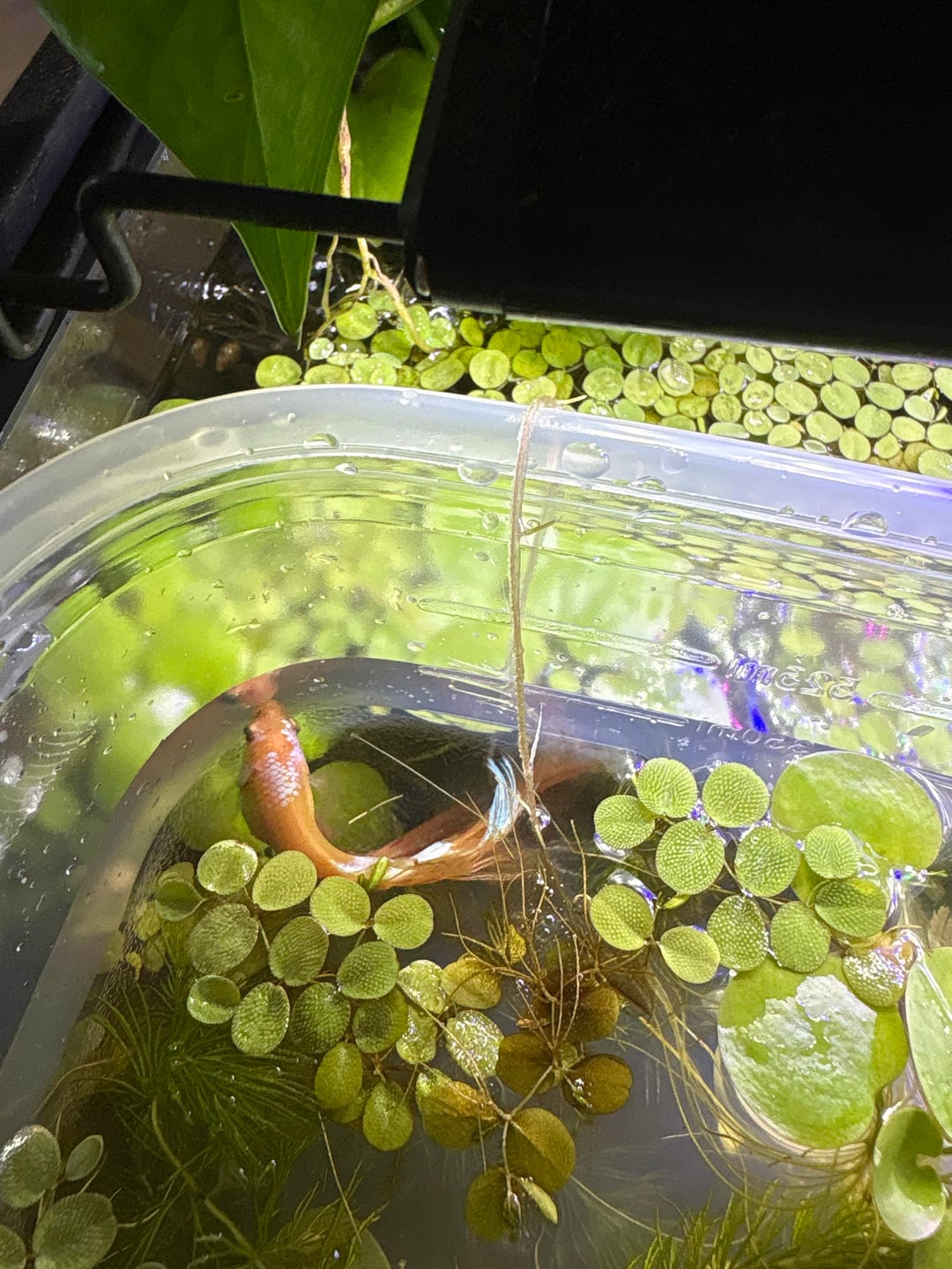 my betta ghost was super constipated – I tried fasting for 2 days and didn’t see much improvement. I was trying to find daphnia but couldn’t so I resorted to some brine shrimp (apparently the exoskeleton helps w constipation too but just not as effective as daphnia). I fed him some yesterday afternoon and waited. I noticed he was lingering at the bottom of the tank and was worried it was the start of swim bladder disease so I decided to separate him in a container for the rest of the day/night to ensure he has easy access to the surface + I’ll be able to see if he had a bowel movement. anyway – I woke up this morning and HOLY SMOKES (first two photos are him before, third photo is self explanatory, and last photo is him now!!!). Just thought i’d share since I don’t typically see brine shrimp mentioned as a constipation remedy and I know daphnia can be harder to come by!! I’m so relieved for him lol my guy was BACKED up