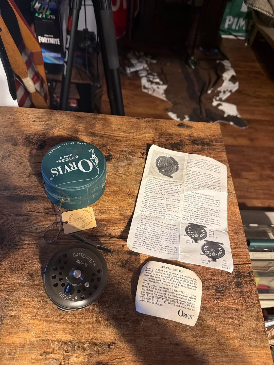 Orivis battenkill probably from the 90s or early 00s nice reel but I’m not huge on click pawl style. eBay could get you 50usd to the right person. I’d just keep it as a display piece since you have the documents and og box.