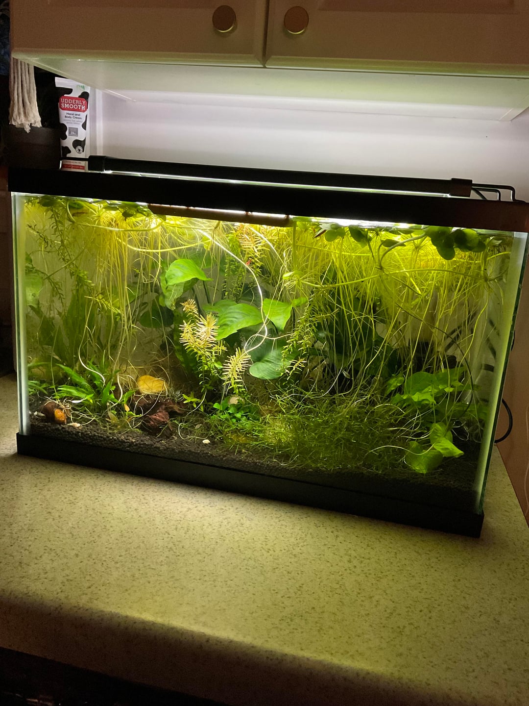 I have a nicely planted and established 10 gallon tank. Picture 2 is my tank. It’s a community now with cherry shrimp (adults and babies) nerite snails, 6 Pygmy corydora, and a mystery snails. It use to have a betta before I got all the shrimp and snails but she died suddenly and tragically, I posted here when it happened. It was just one of those things, I actually swore off bettas and decided to go the community route instead. From all I can see everything is thriving. I have baby shrimp and pregnant shrimp. The mystery snail is male so no eggs. I do a 20% water change every 2 weeks like clockwork just to keep everything nice and clear. I really didn’t think about another betta after the heartbreak of the last one.
