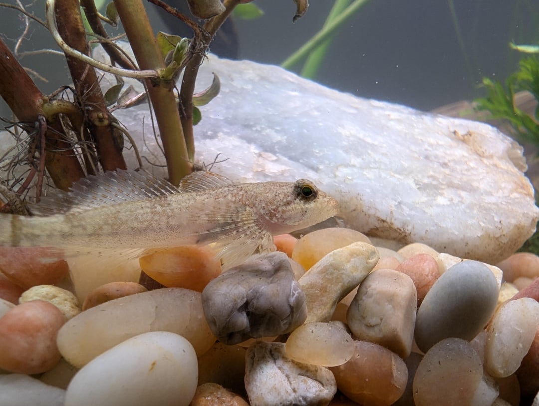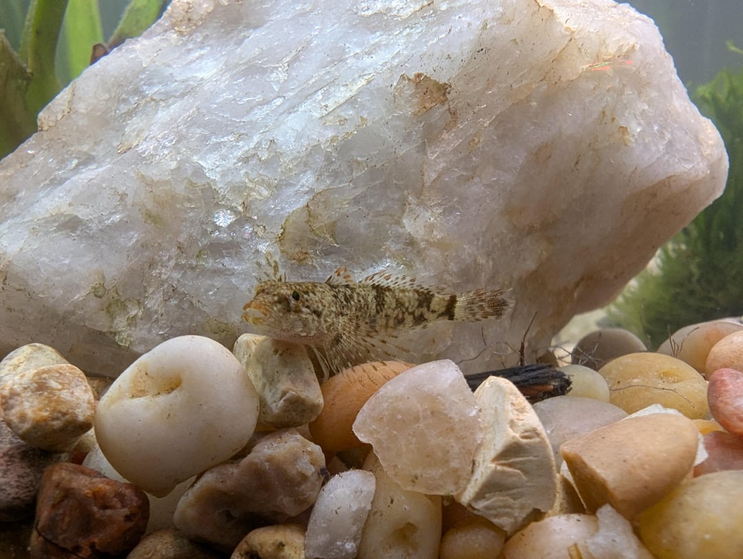 We have a small native tank at home with a few fish in it, and recently I caught these sculpins in a creek and added them. They're very pretty, but I kind of think they change colors? It's fascinating to see because they stay the same brownish color but they darken and add pattern depending on what they're trying to blend in with. What kind are they?