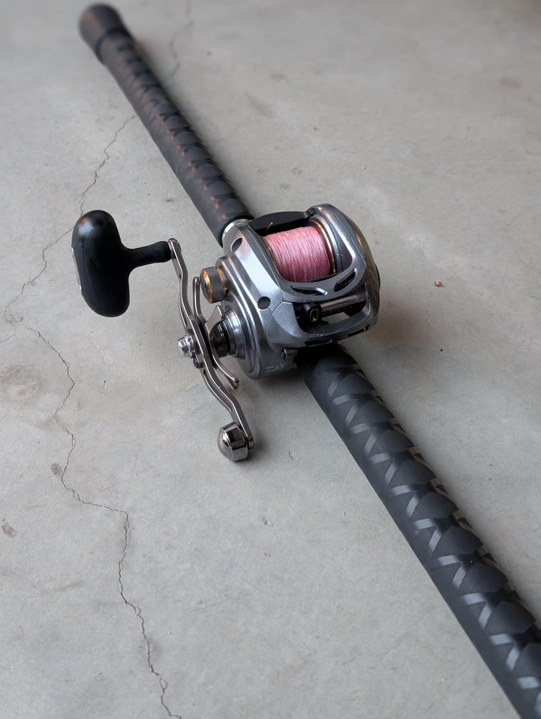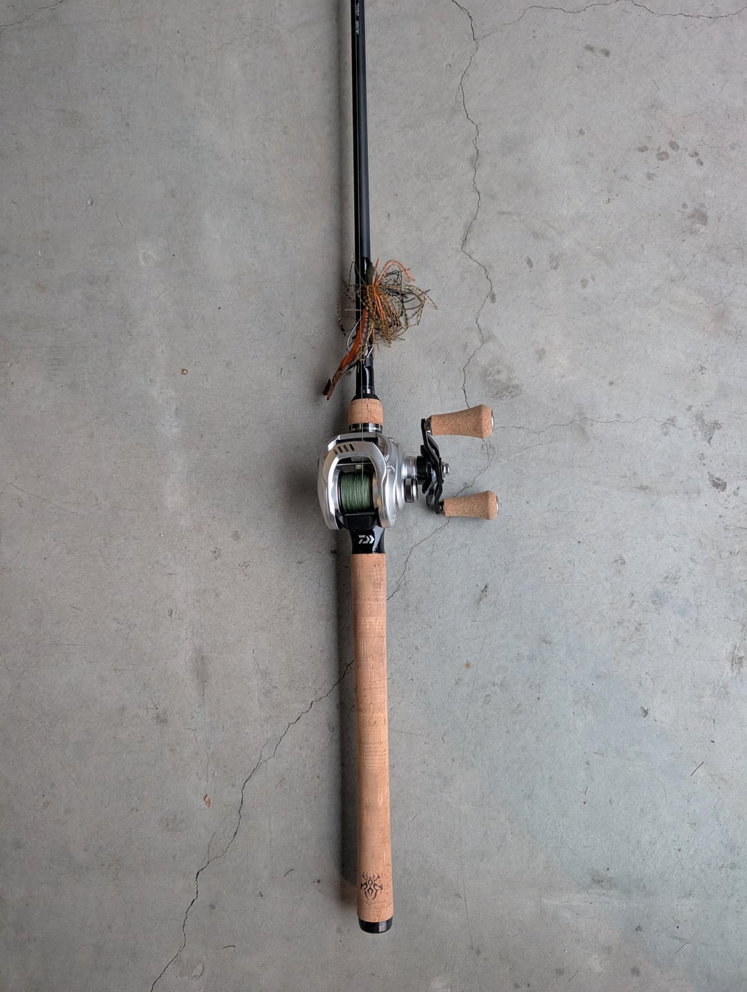 Daiwa Mangetsu 7.3 with Daiwa Tatula Elite 8ft punching rod.
