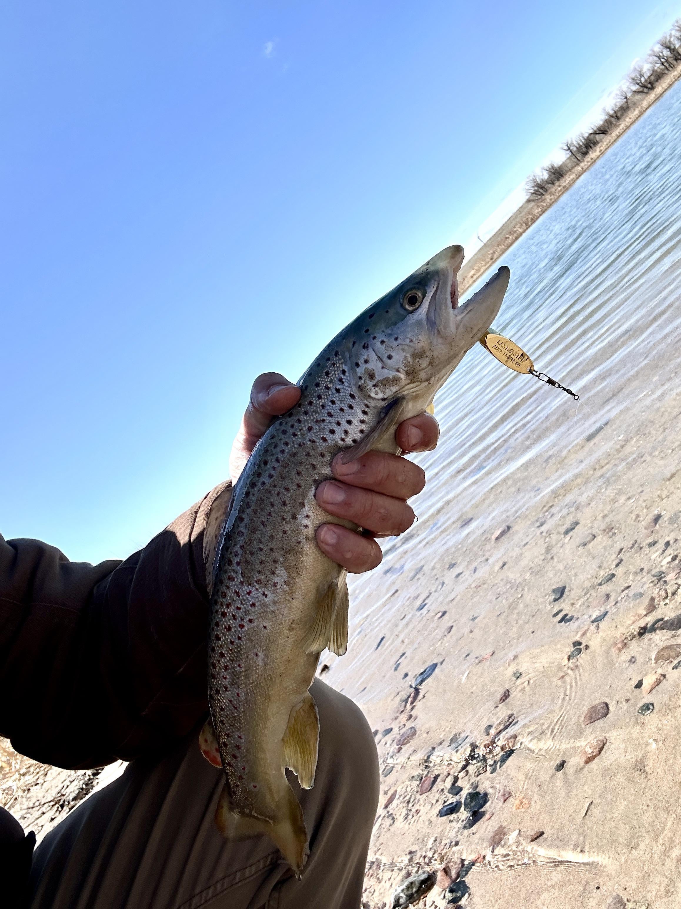 Nice brown trout (around 16 inches) on a gold Kastmaster