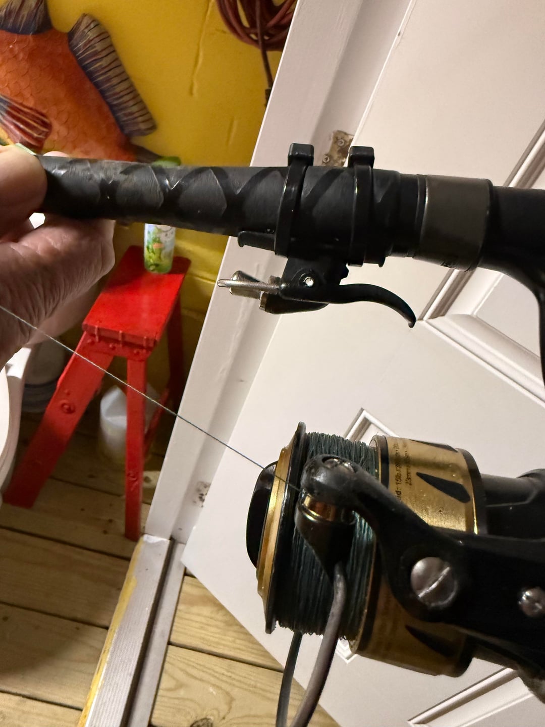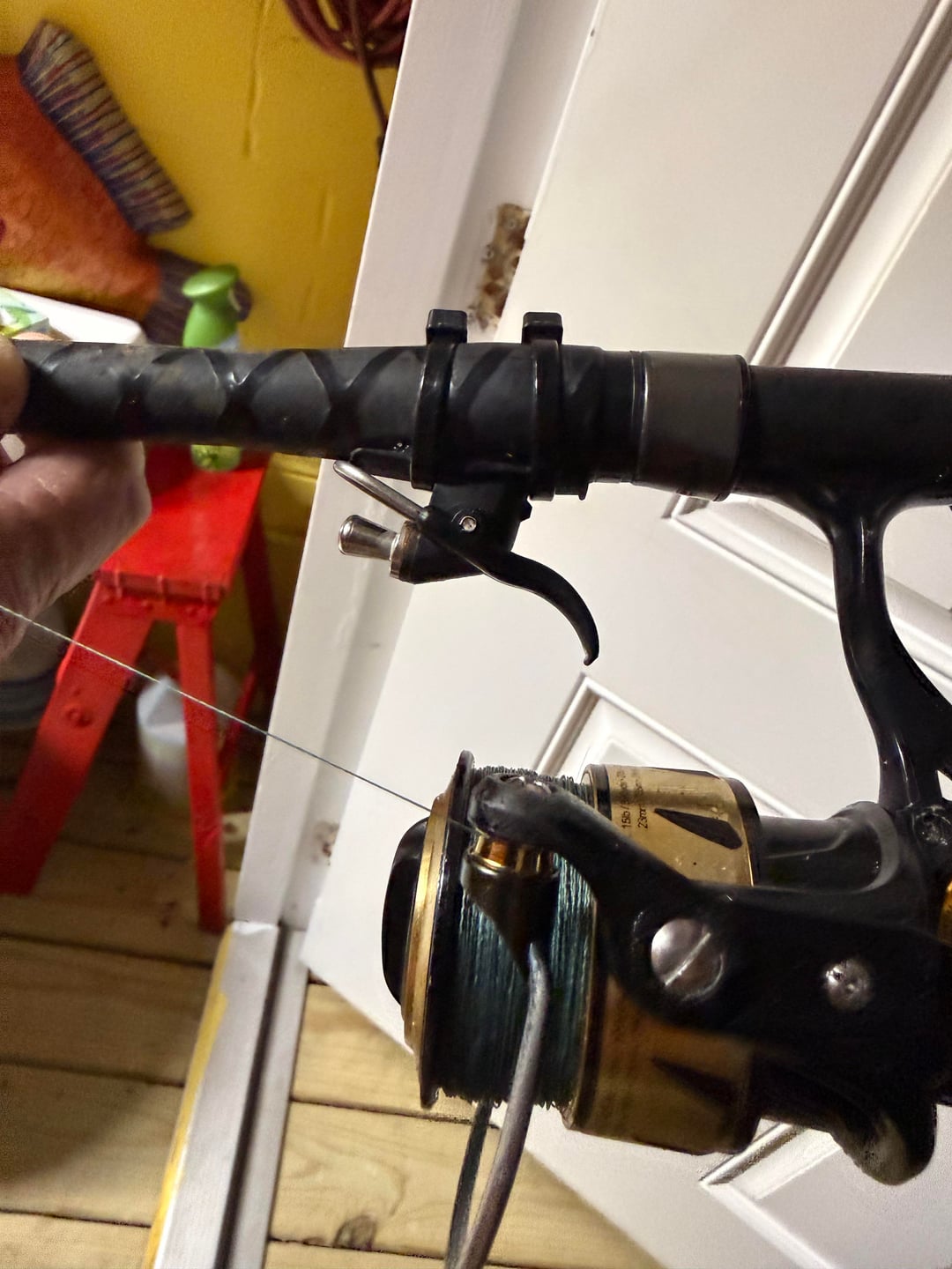 A friend found this rod and reel setup this morning while walking the beach. We have no clue what this little trigger set up is for. It’s a 4500 on a 10 foot rod.