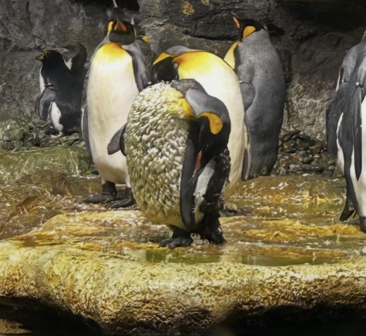Went to the aquarium. Why does the penguin’s fur look strange?