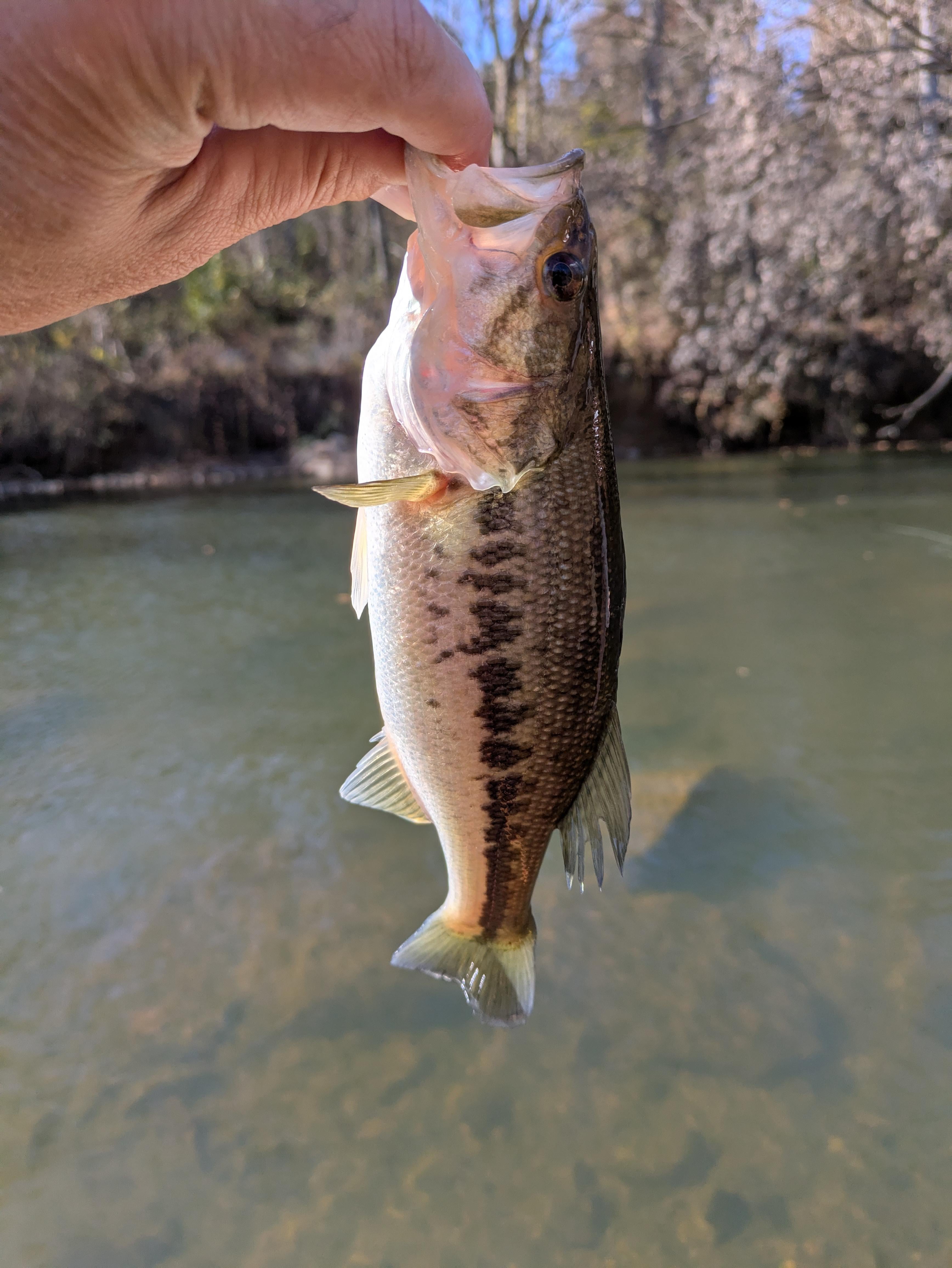 Caught this in a Potomac River trib. Looks like a largemouth but weird stripe and smaller mouth structure…