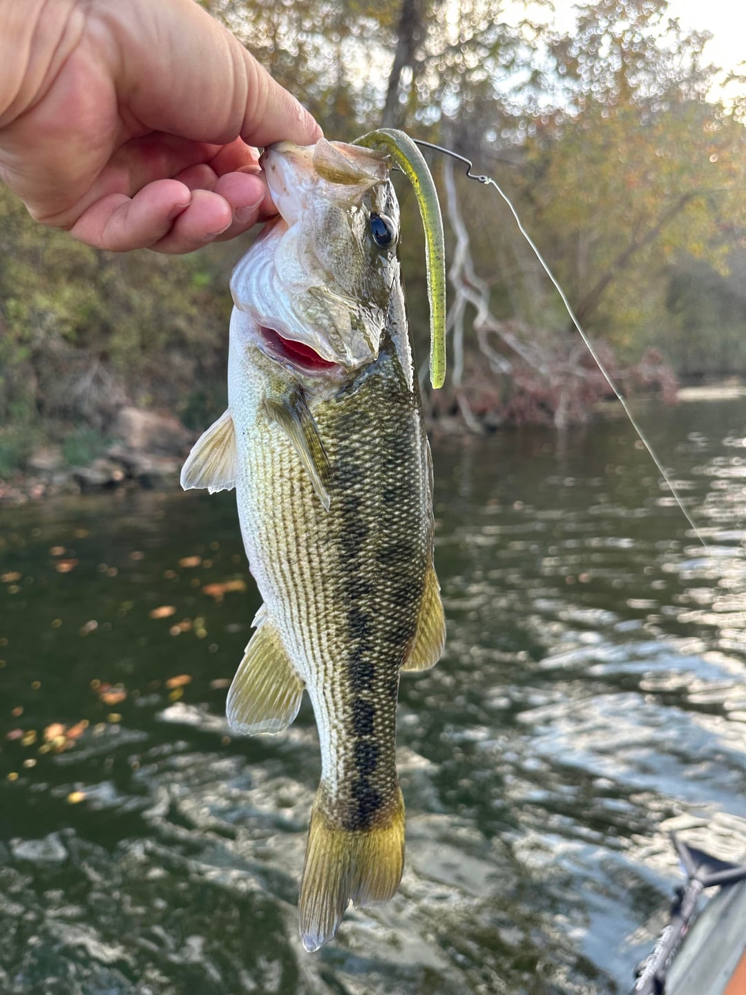 Another 85 degree day here in Tejas and I hauled in some nice Guadalupe bass (none trophy sized) along with largemouths, crappie, drum, and gar. All on Texas rigged homebrew plastic worms and Ned rigs. Variety is the spice of life!!