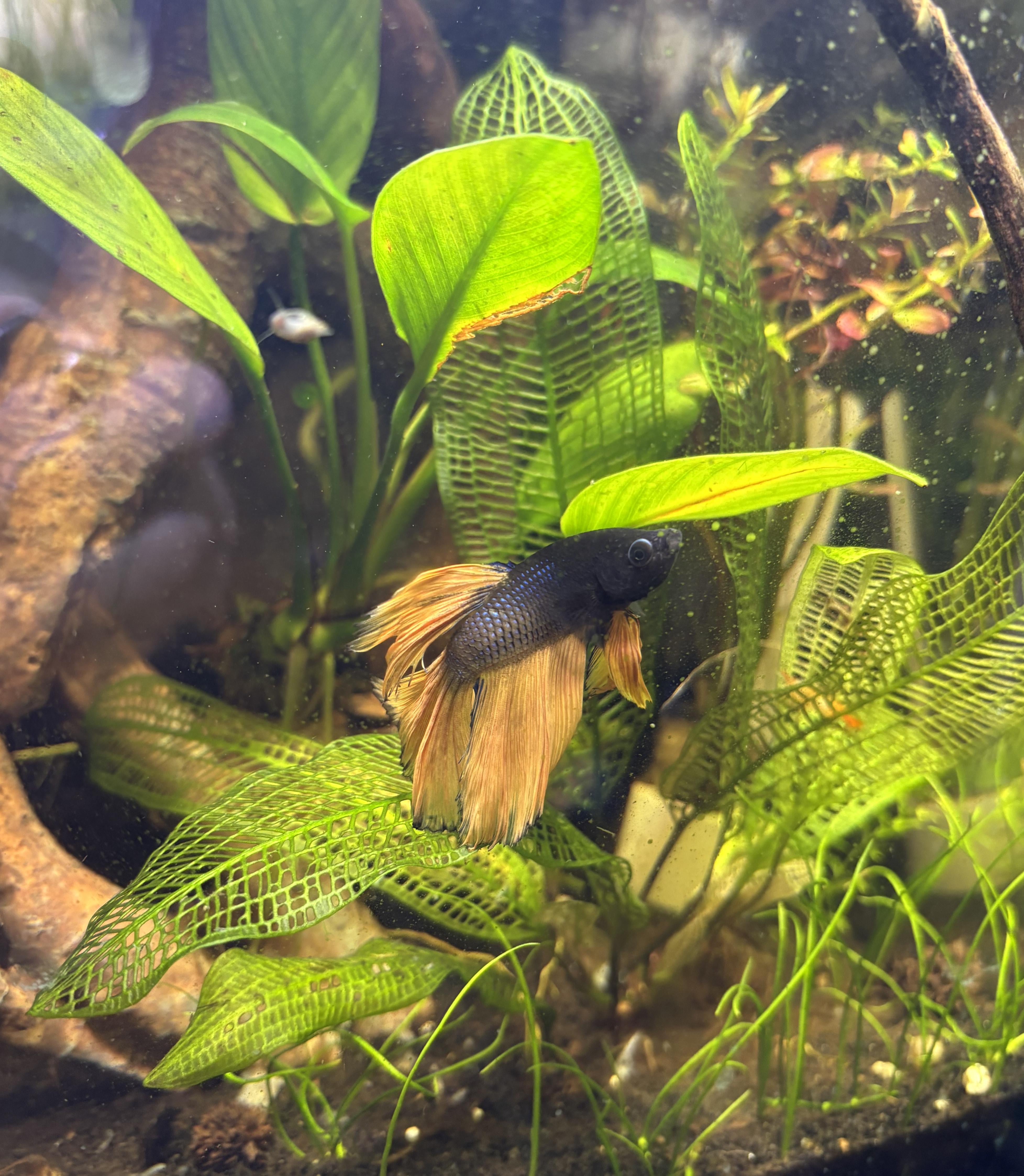 I was worried he wasn’t going to do well given how curvy his spine is but he’s eating like a champ and finding all the leaves I’ve set up for him to rest on. He can actually swim surprisingly well!