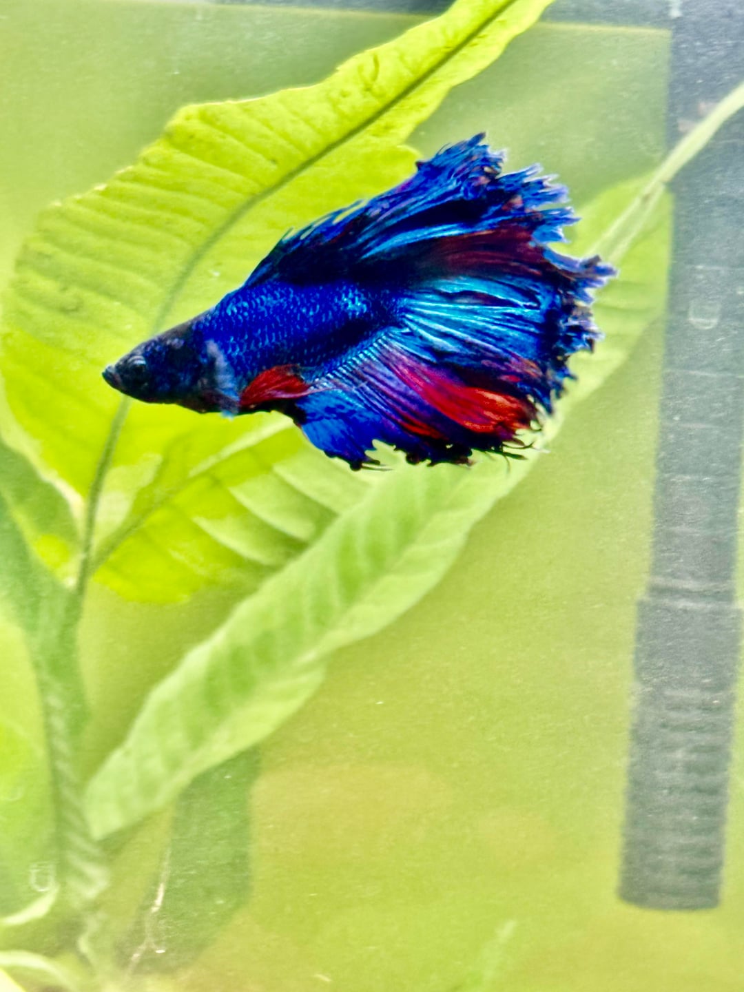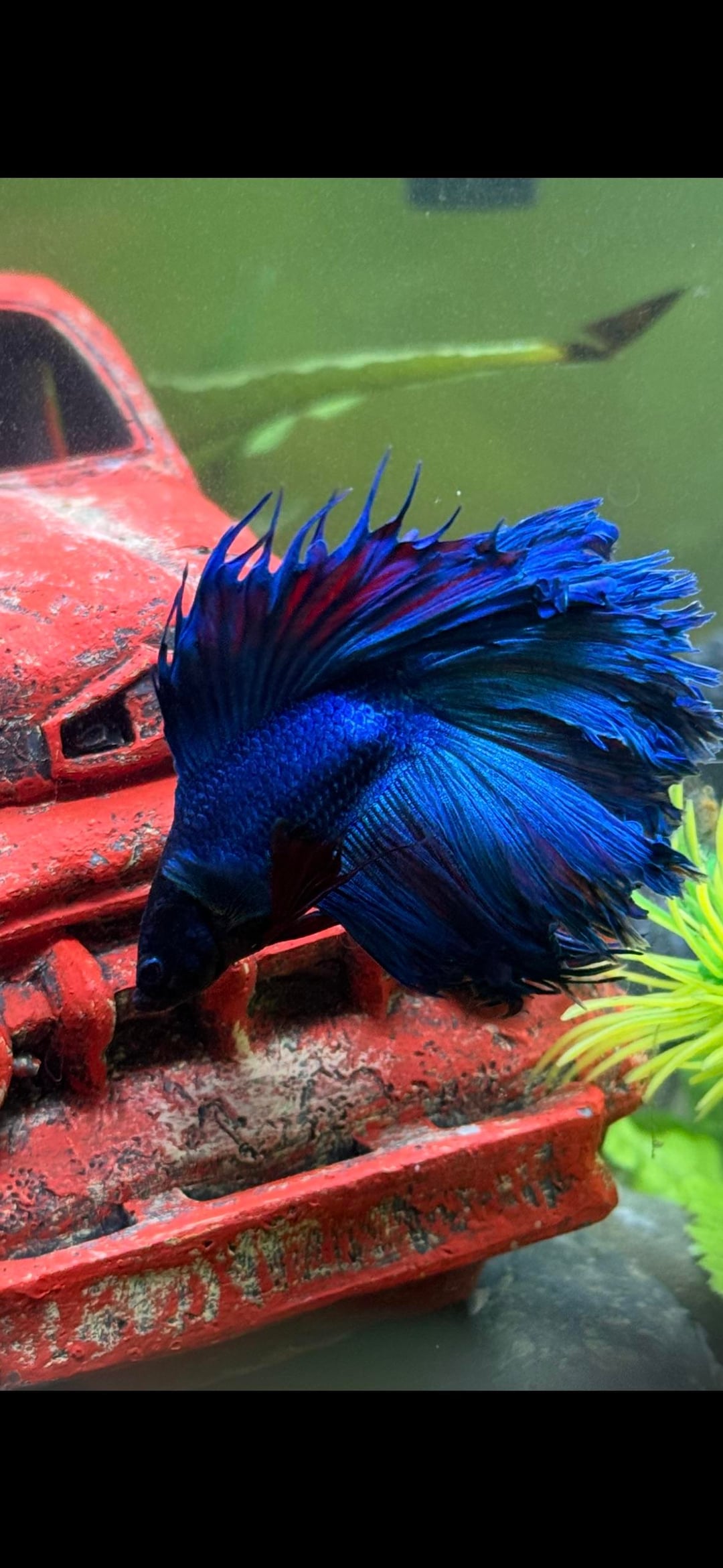 I bought my beautiful betta 3 months ago after saving him from a pet store, and he was almost completely blue with some black in his fins. It slowly started turning into a rich deep blue instead of pale, and now is turning red. Is this normal/a good sign?