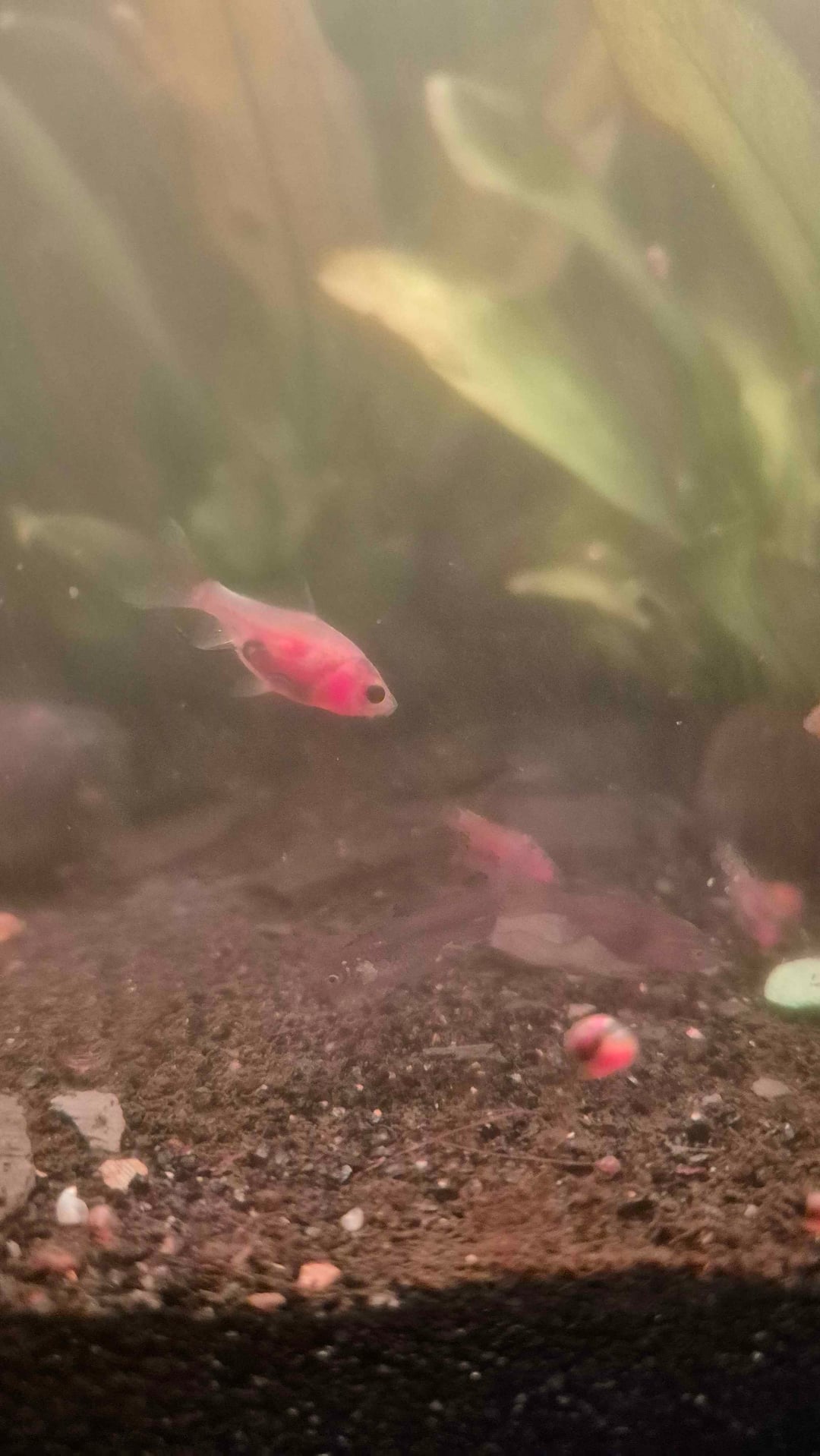 As the title suggests, I’ve got a bunch of baby fish that I can’t identify for the life of me. I bought some plants around a month and a bit ago and I guess that came with a bunch of eggs on them? Now I have ~20 little cute bebes in the tank. Also apologies for the dirty tank, I haven’t been able to turn the filter on in fear that these guys get sucked up.