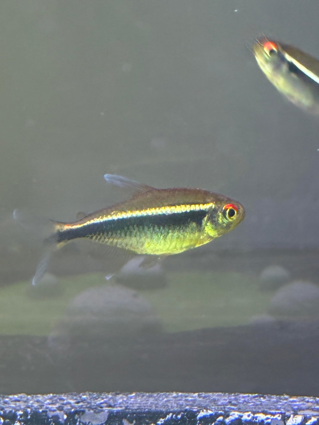 So I recently got a small school of black neon tetras, but I’m concerned that one of them may be a different kind of tetra. Can anyone ID for me? First 4 pics are the potential imposter, last 4 are my other black neons for comparison.