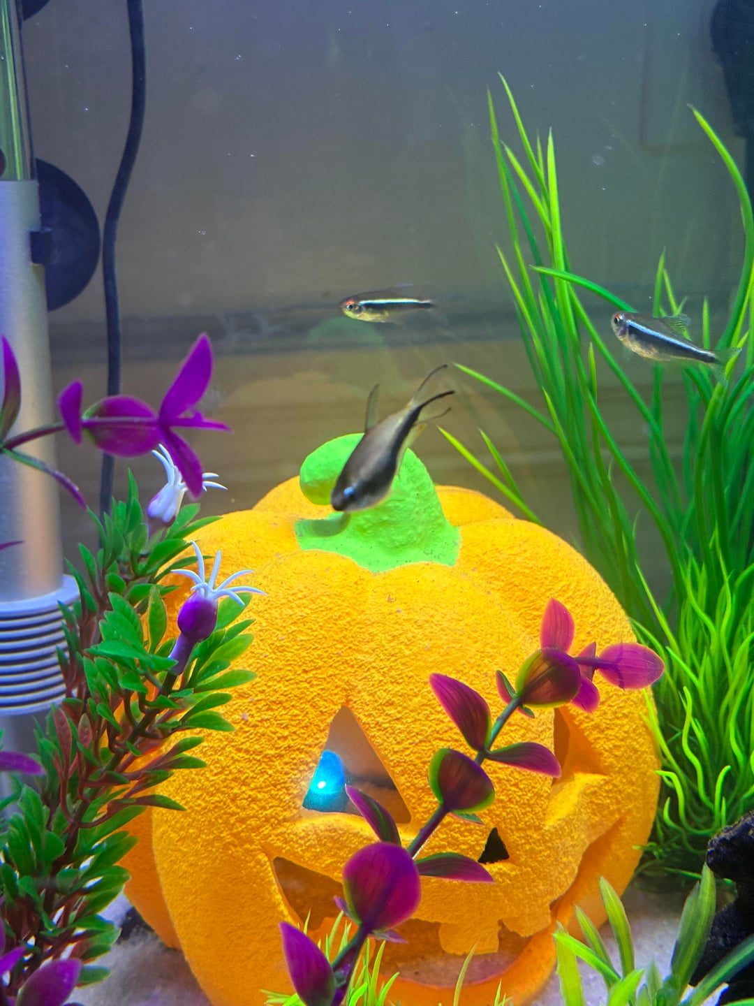 I’ve also got a 10 gallon with two African dwarf frogs and a 6 gallon with a betta fish, which we’re hoping to upgrade to a 10 gallon soon. Other than that, I don’t think I can financially afford a larger tank right now, nor do I think it would fit in my apartment— especially cause we’ve only got a handful of outlets in the place to plug stuff in.