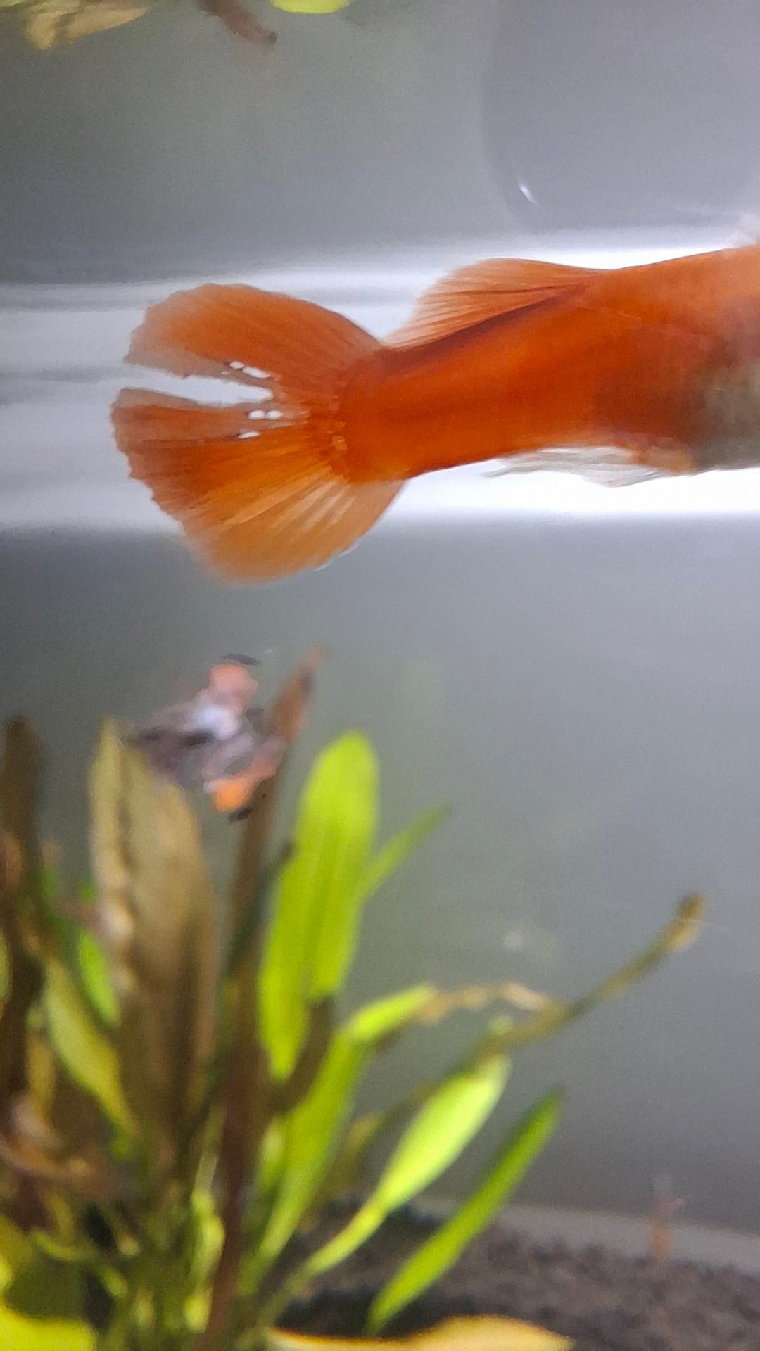 Guppies love to nip fins. Especially if their tank doesn’t provide enough cover like yours. Add way more taller plants/driftwood and the bullying should hopefully subside. But guppies can also just be dicks and bully the subdominant one to death