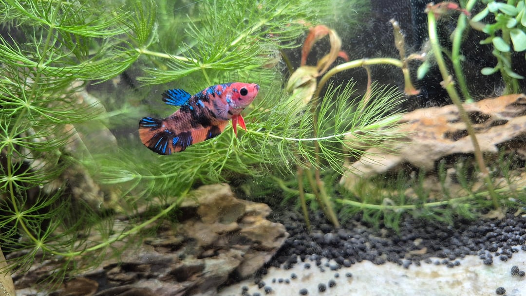 My new Koi female betta named Greta❤️ 5 gallon set up. https://www.reddit.com/gallery/1p1adw6 Posted by MOCHI_6921