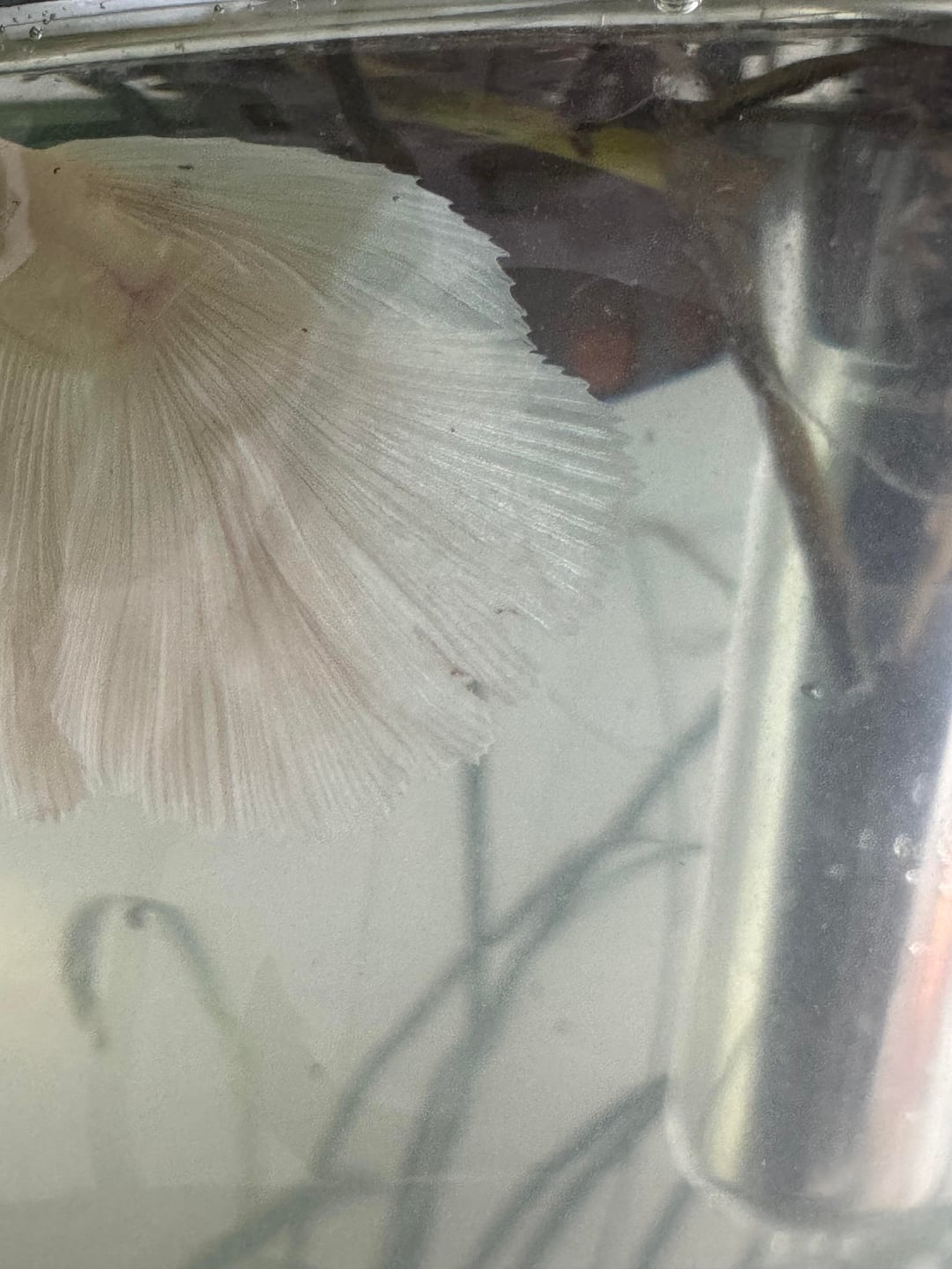 Today I noticed that something seems to have happened to his tail, and my first thought was fin rot. Right now I’m not sure whether it’s just a tear or an infection. If it is an infection, can the discoloration develop this quickly?