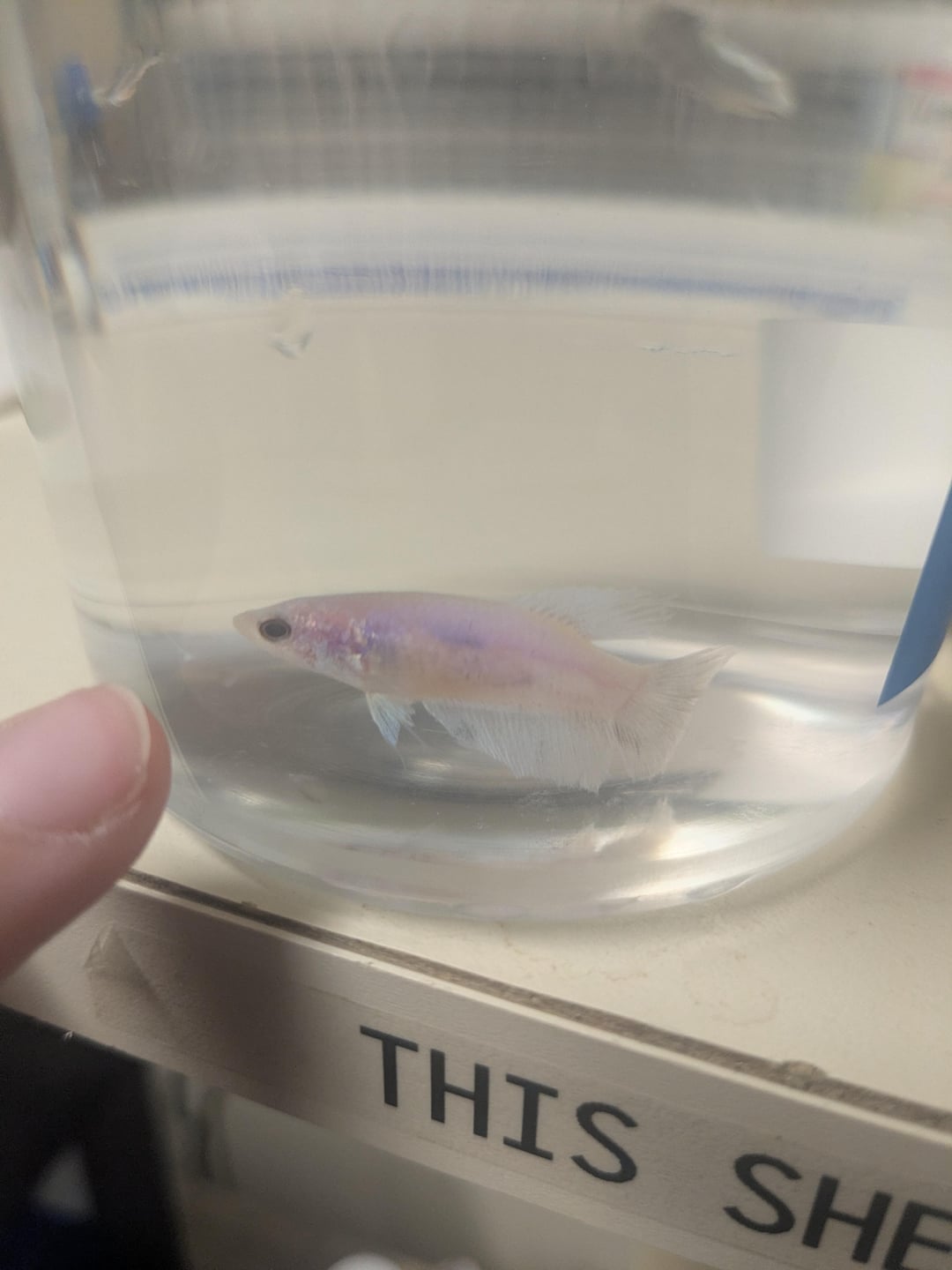I've never been able to take a fish home, until now… I have a planted 15g blackwater with shrimp, and I've been planning on stocking a school of pygmy corys and either a female betta or a pair of sparkling gouramis. This betta at my work has caught my eye, she's been there for a while as she develops swim bladder when removed from the hospital room, then recovers almost immediately upon return. She's free to a good home as well, so my money wouldn't go towards the dreadful cups, and she's an absolutely miniscule specimen, like the smallest little betta you've ever seen. Cute and inquisitive too.