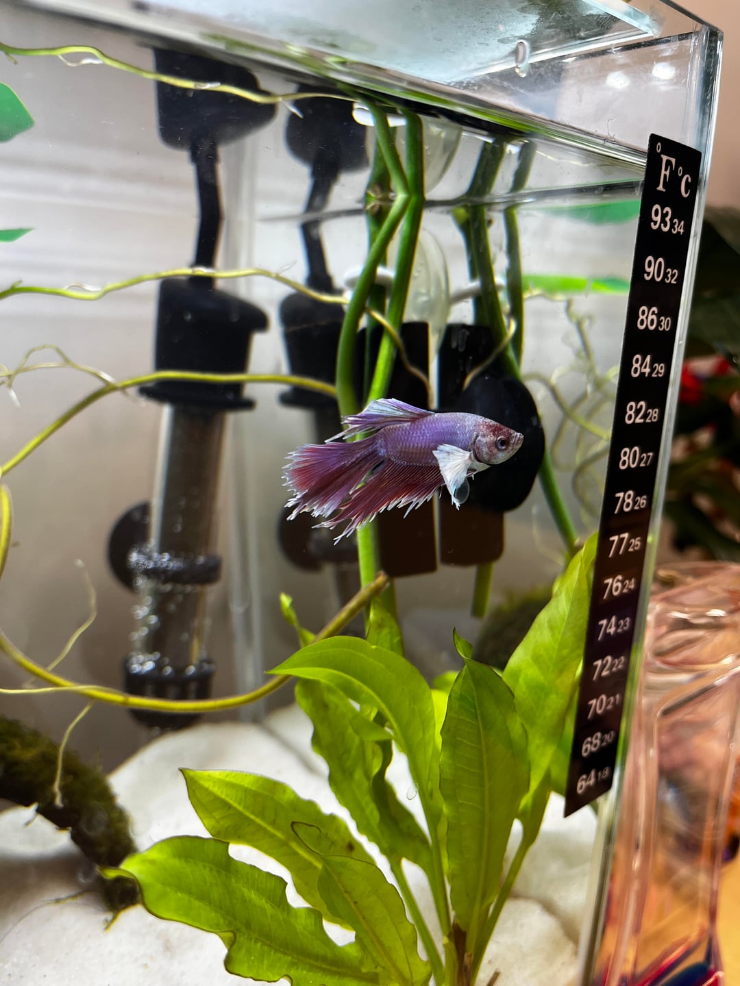I knew bettas change colors under stress, but I can’t believe how much he’s changed in just the few hours I had him! Welcome little buddy!! ❤️