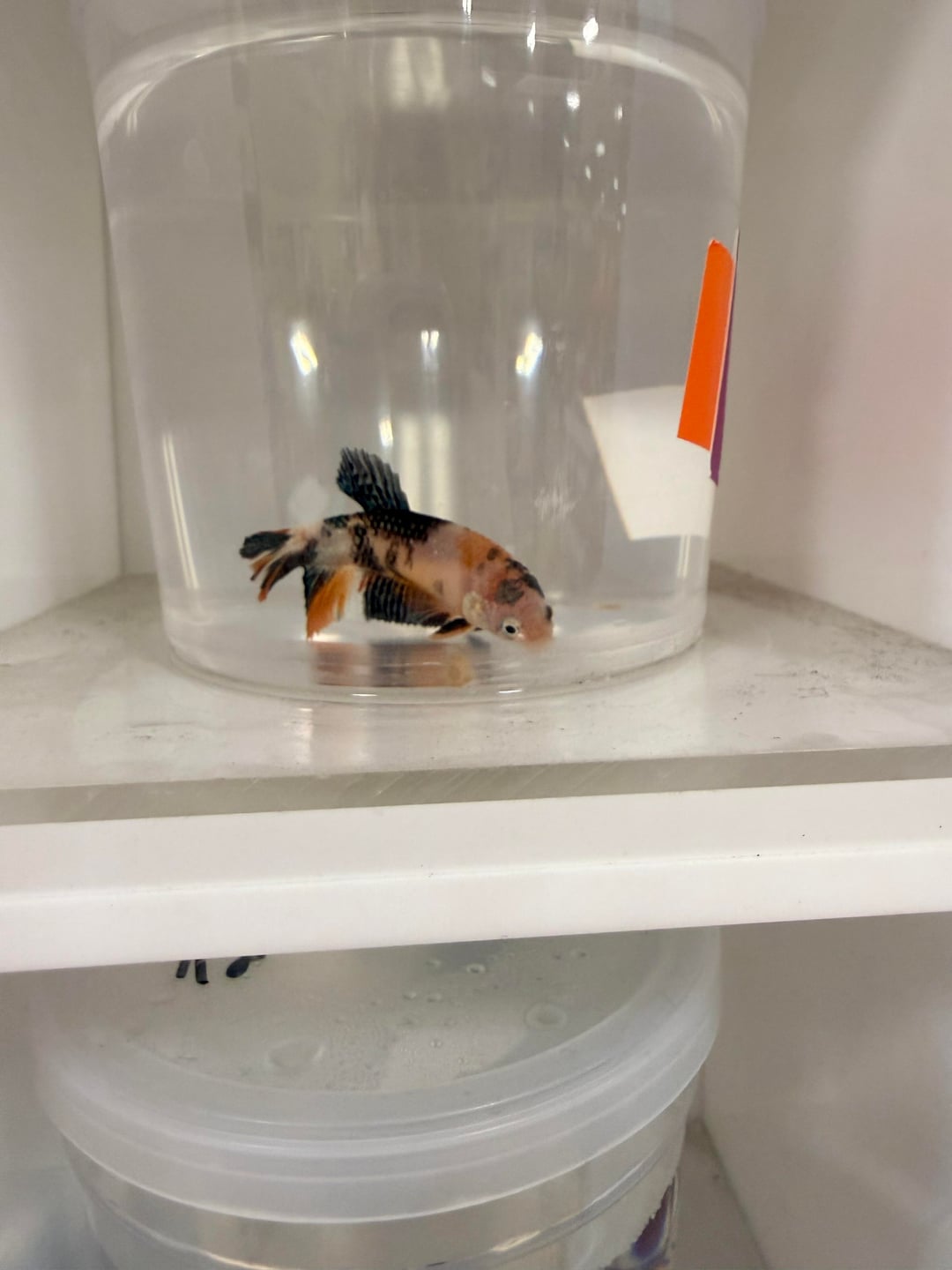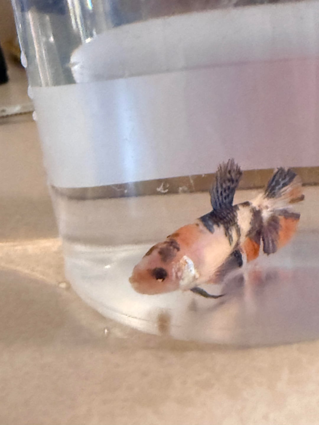 Was shopping for my tortoise bird lizard and other betta and I saw this little guy. He reminded me of a calico cat and I couldn’t stop thinking of him 🧡🖤 I went back a few days later and scooped him up! Going to be setting up his tank and using some wooden decor pieces, plants and substrate from my established tank to help the cycling process