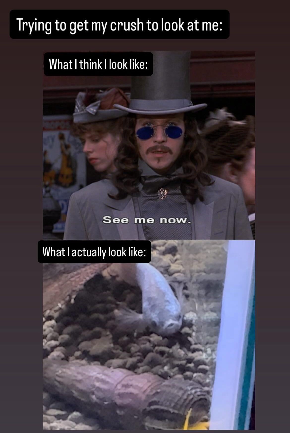 I've been watching to make sure there's no signs of aggression. He doesn't flair at the snail, or bite his "ears" but he does stare at him for long periods of times like in the pic above. Anyway, I was so inspired, I decided to make a meme about it. Hope it's okay to post here! I also have other pics of my betta draping his body over the snail, the snail is still out of his shell (not hiding), so I think they both like each other.